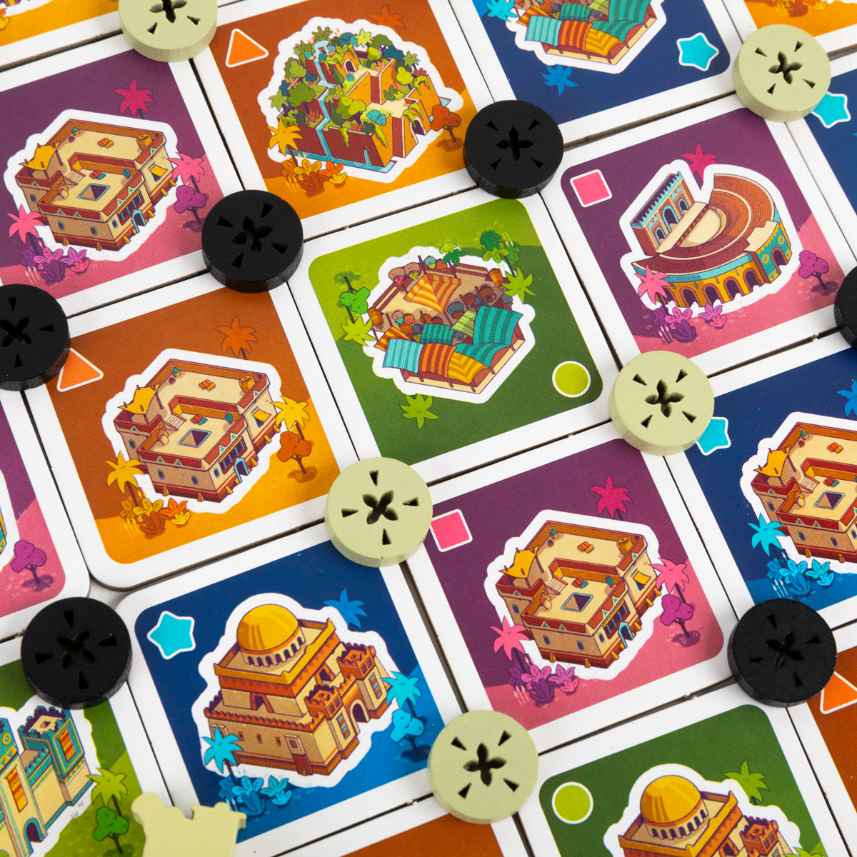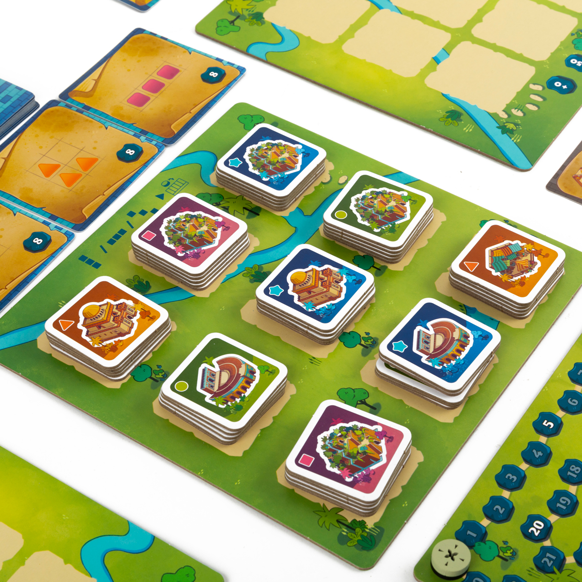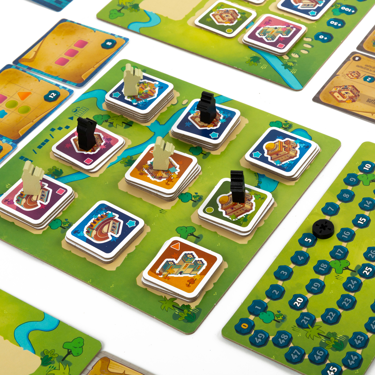 «Архитекторы Амитис» — это дуэльная настольная игра, основной механикой которой является размещение тайлов. В свой ход вы выбираете одну из построек на планшете, поставив вашего архитектора на доступную стопку тайлов, а затем размещаете полученный тайл в своём городе и применяете его эффект. Расположив постройки в своём городе в соответствии с вашими картами проектов, вы зарабатываете победные очки. А если вы будете грамотно распоряжаться своими архитекторами, то сможете снискать благосклонность царя и получить дополнительную награду. Игрок, набравший наибольшее количество очков за время строительства, будет назван лучшим архитектором Вавилона!