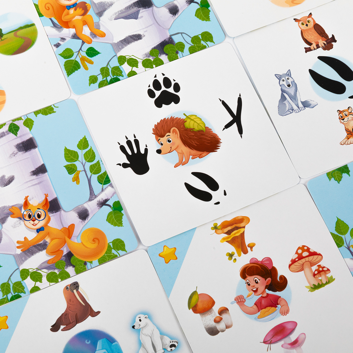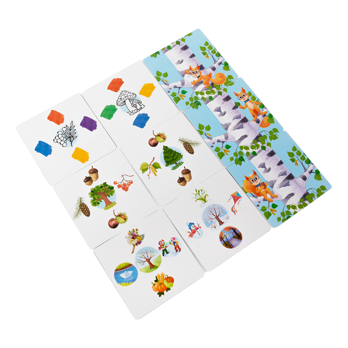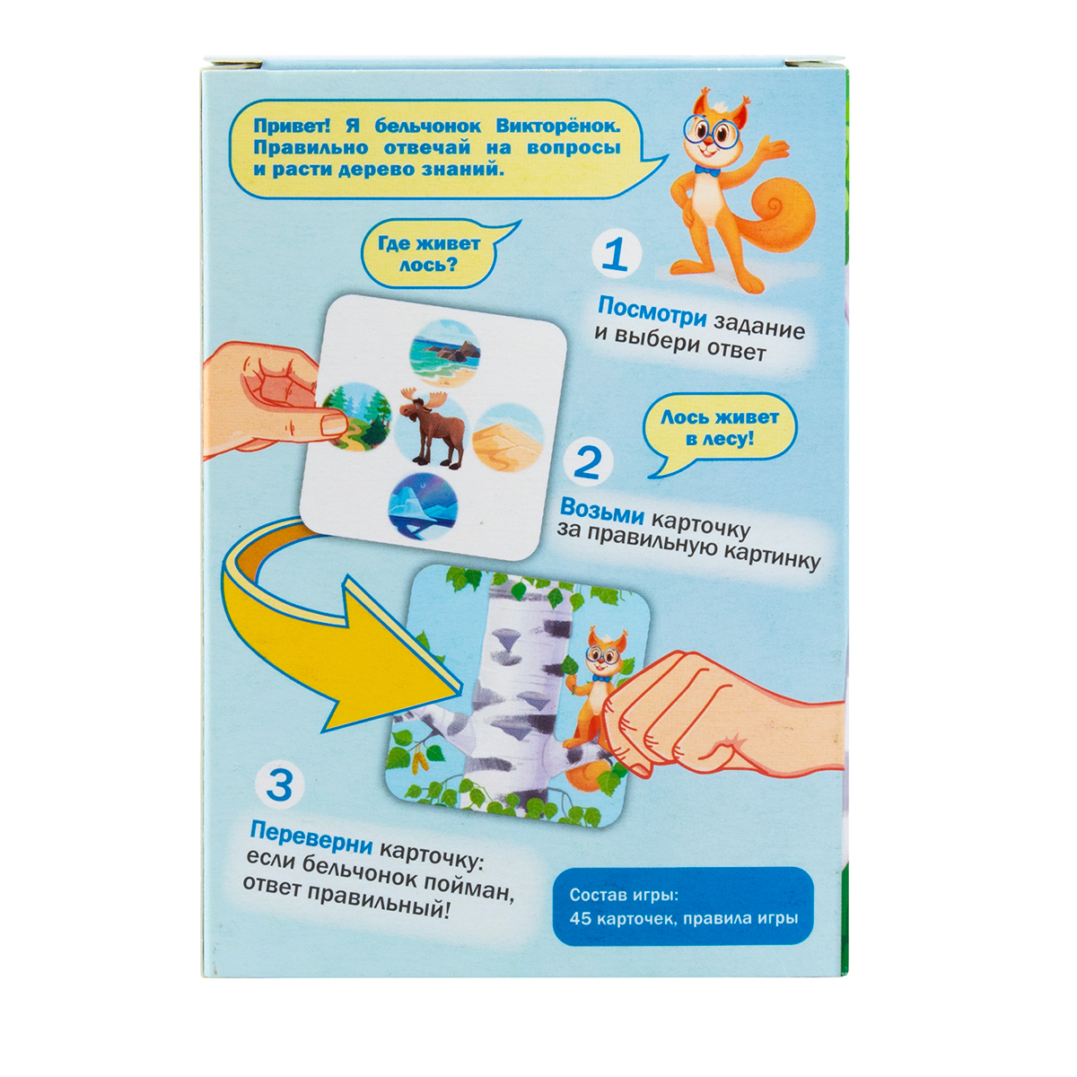 - Если на обороте карточки с выбранной стороны бельчонка нет, ответ неправильный. Игрок возвращает карточку под низ стопки.