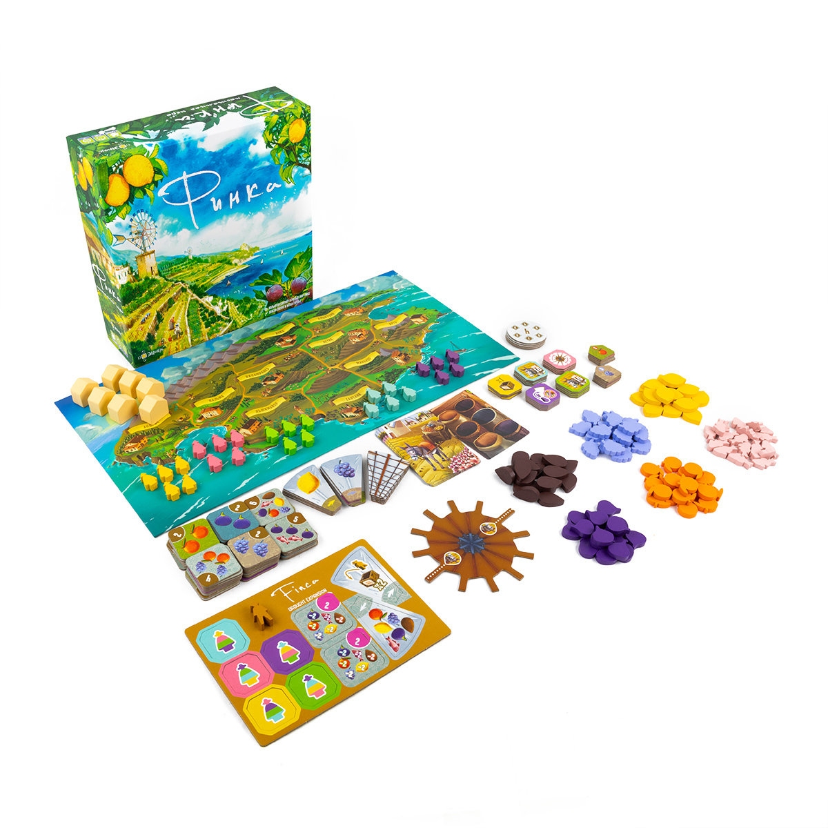 «Финка» — отличная семейная игра, в которой игроки возьмут на себя роль фермеров на Майорке, собирающих урожай и доставляющих его в разные регионы острова, заказы жителей которых будут меняться в течение игры. Игра выгодно отличается ярким оформлением, несложными правилами и недлинными партиями, а также интересной механикой получения ресурсов.