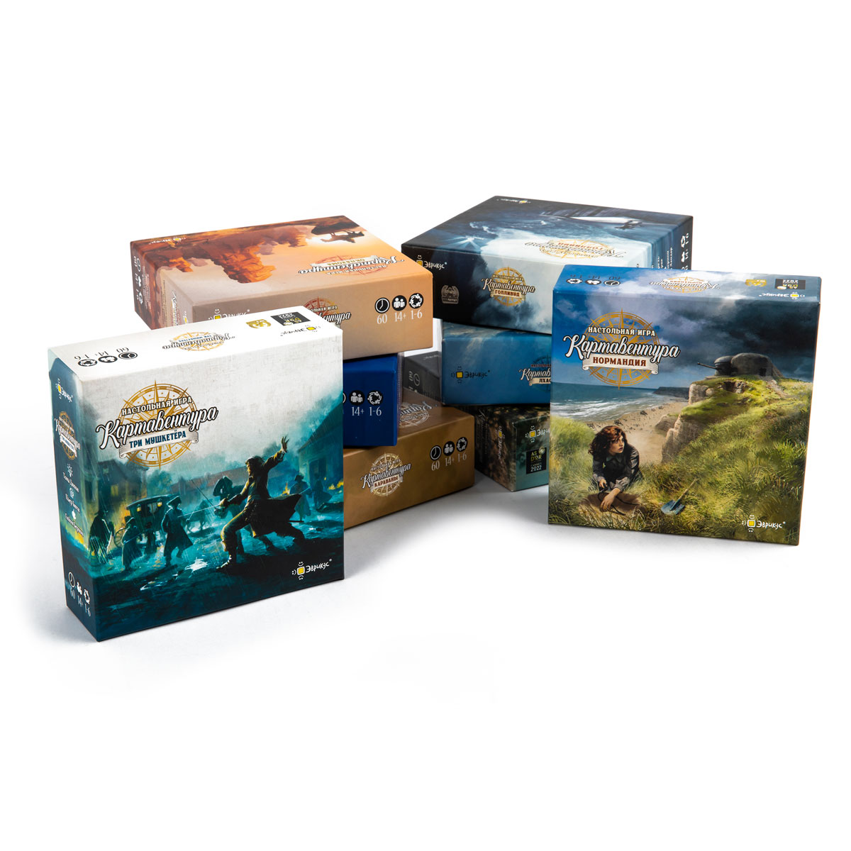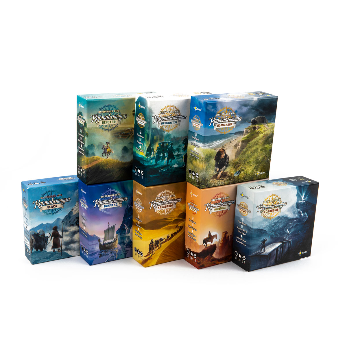 В этих играх нет буклета с правилами, достаточно просто следовать указаниям на карточках. Зато в каждой игре серии много иллюстраций и текста, передающих атмосферу эпохи. А также в коробке вы найдёте дополнительный буклет с исторической справкой о том времени, куда перенесла вас игра. В настоящий момент на русском языке вышло 8 игр: «Винланд», «Лхаса», «Караваны», «Оклахома», «Версаль», «Голливуд», «Три мушкетёра», «Нормандия».