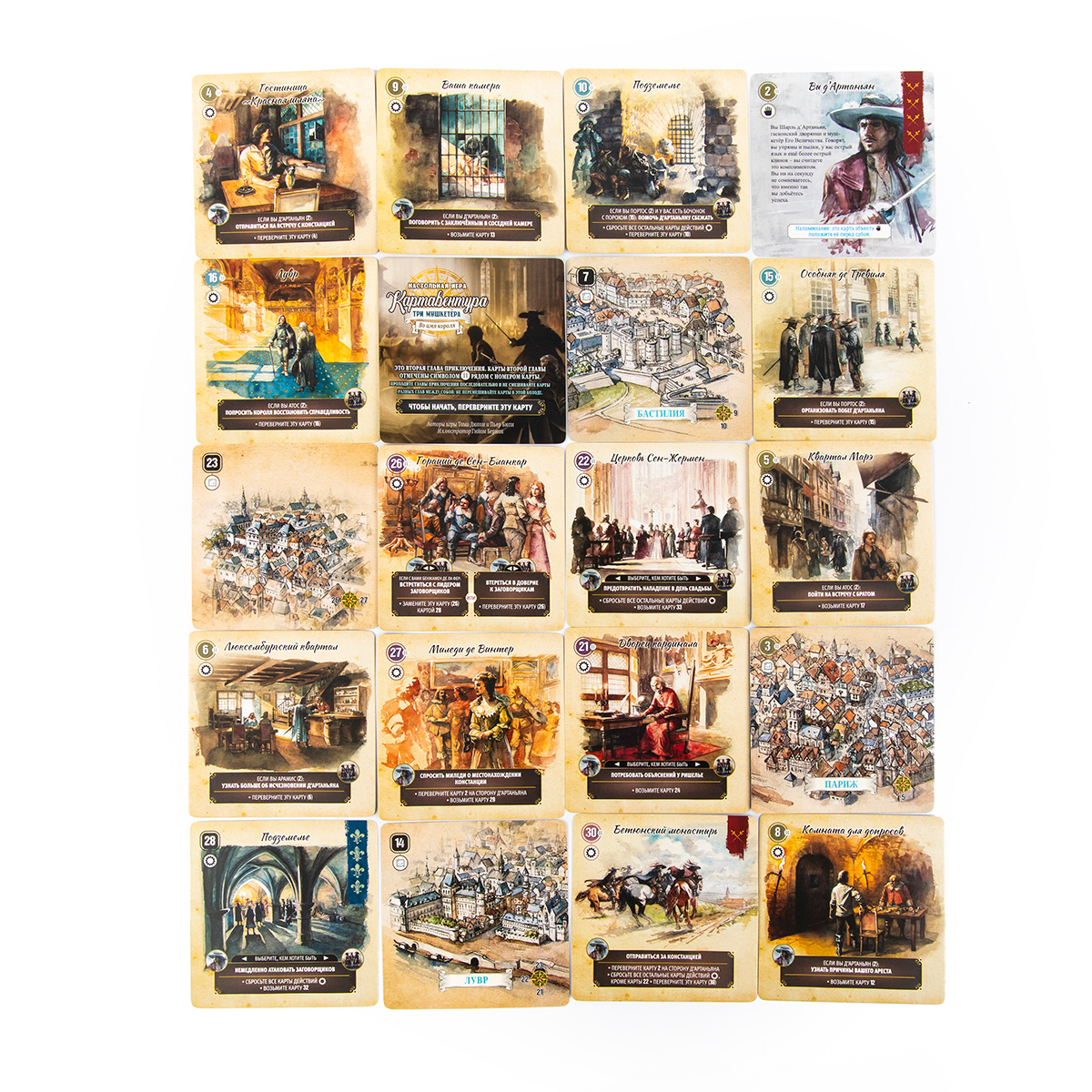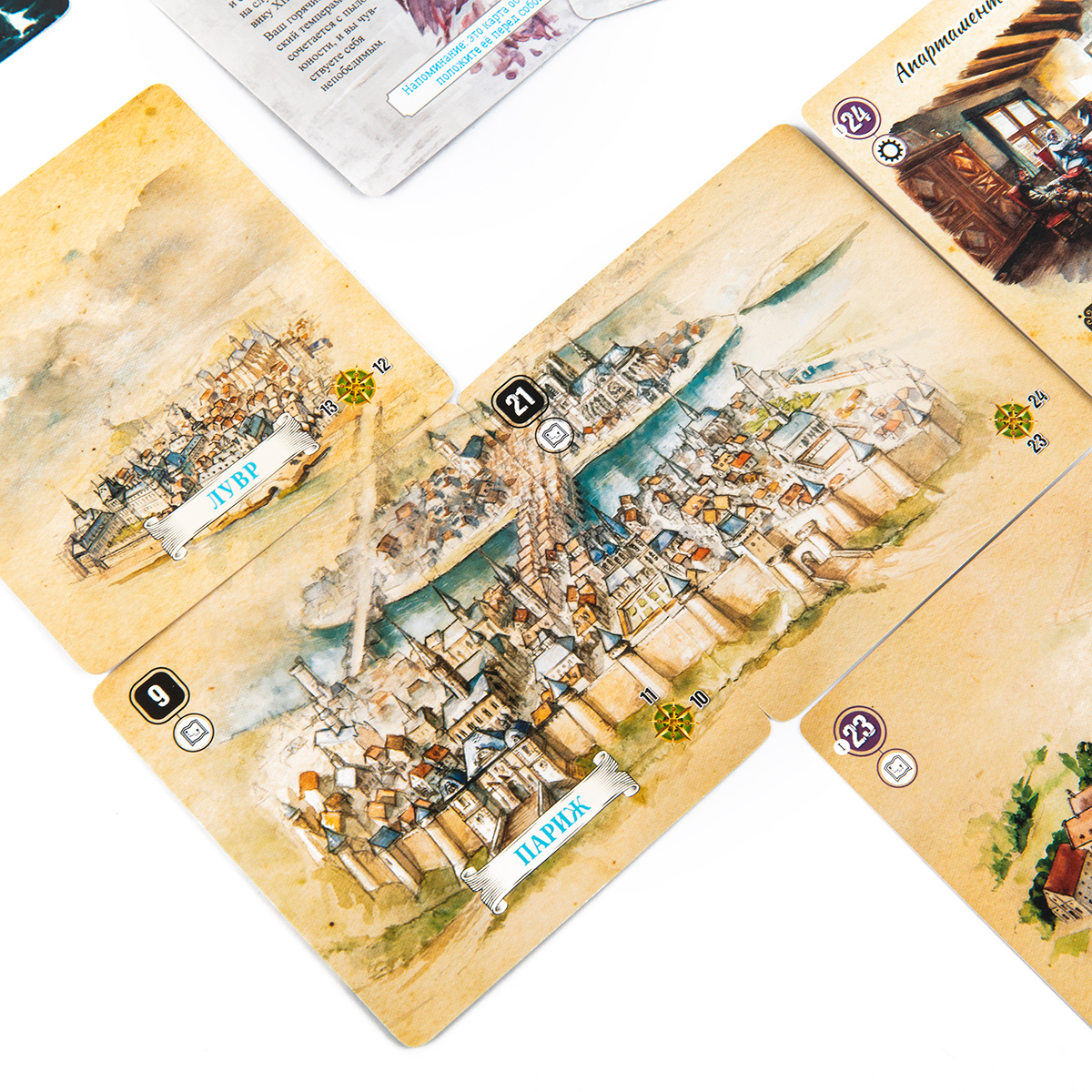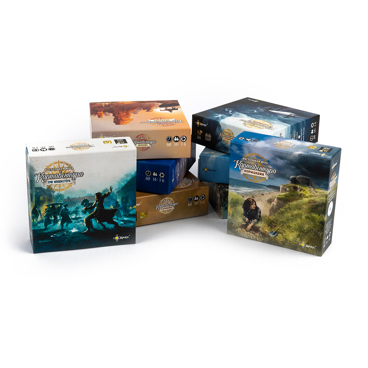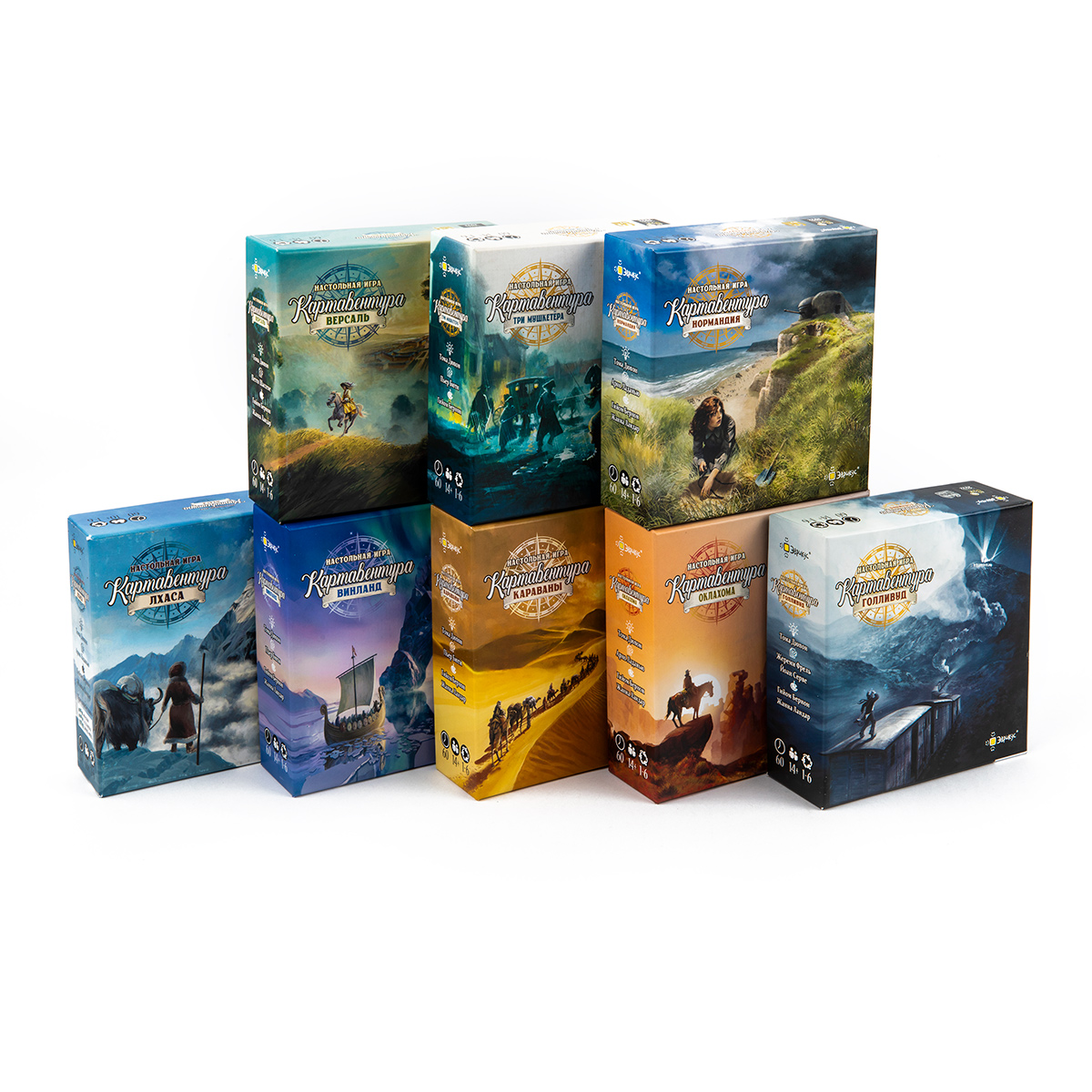 В этих играх нет буклета с правилами, достаточно просто следовать указаниям на карточках. Зато в каждой игре серии много иллюстраций и текста, передающих атмосферу эпохи. А также в коробке вы найдёте дополнительный буклет с исторической справкой о том времени, куда перенесла вас игра. В настоящий момент на русском языке вышло 8 игр: «Винланд», «Лхаса», «Караваны», «Оклахома», «Версаль», «Голливуд», «Три мушкетёра», «Нормандия».