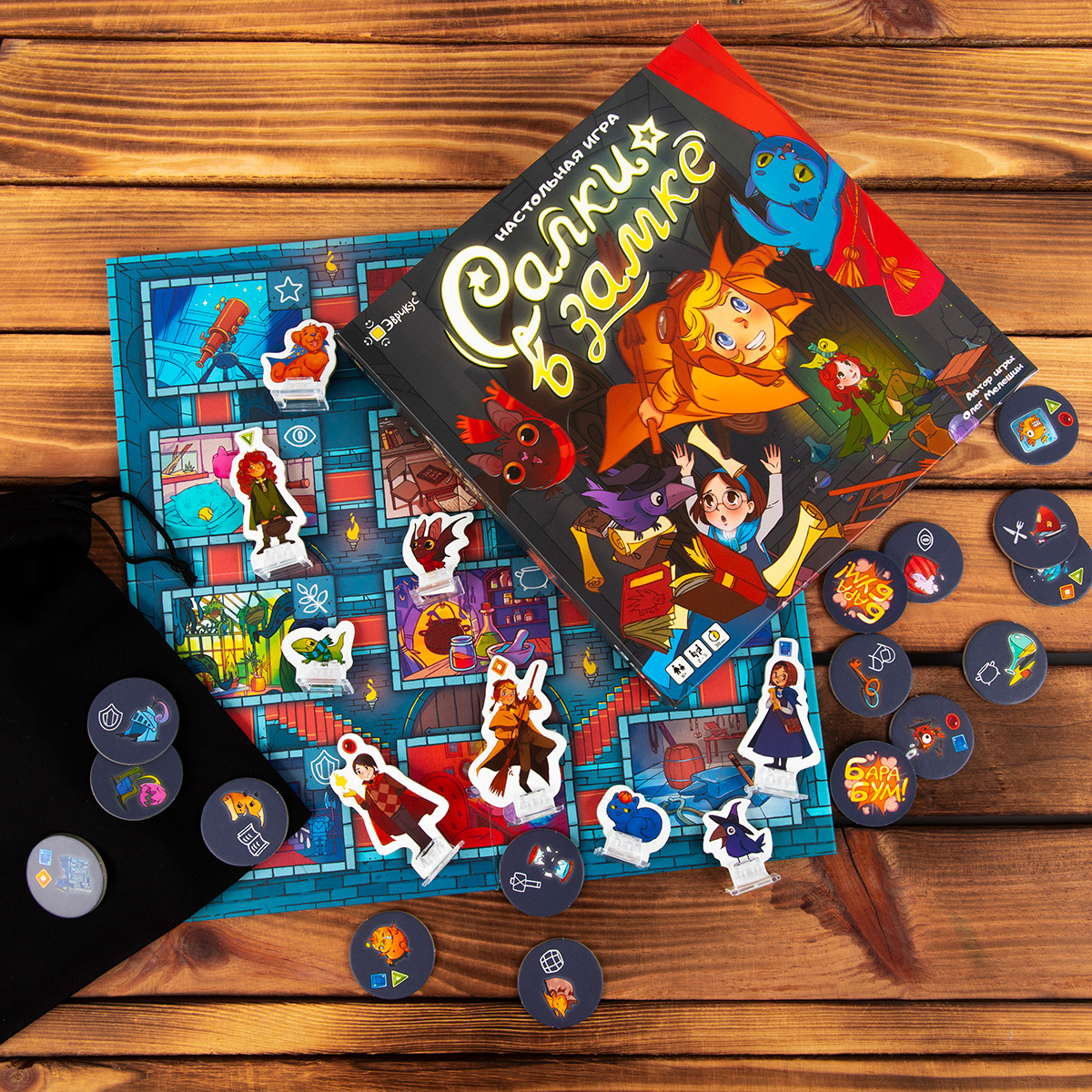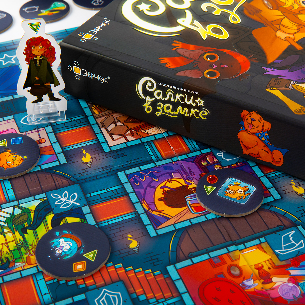 «Салки в замке» — это детско-семейная игра с механикой «один-против-всех», которая разворачивается в атмосфере волшебства и магии в стенах старинного замка. Один игрок возьмёт на себя роль озорных животных-фамильяров, которые будут перемещаться по комнатам замка, стараясь ускользнуть от хозяев и при этом устроить как можно больше беспорядка. Остальные же игроки станут волшебниками, прикладывающими все усилия, чтобы поймать своих питомцев. Хитрость, планирование, работа в команде, умение просчитать противника - всё это обязательно понадобится вам, чтобы выиграть в этой замечательной настольной игре. Игра отлично подходит для партий взрослого с детьми, ведь тут не придётся поддаваться.