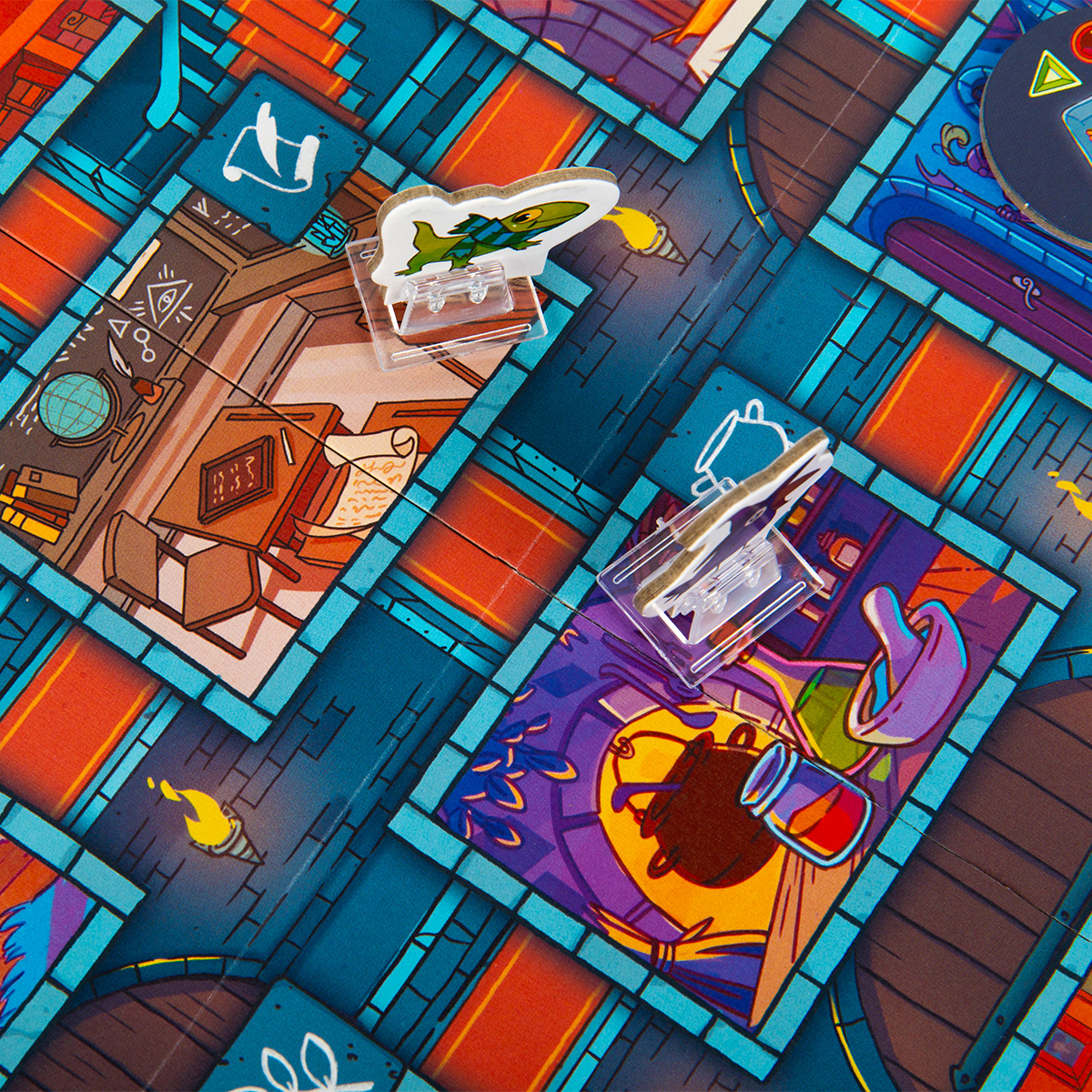 1 Игрок передвигает фигурку 1 любого фамильяра в любую соседнюю комнату, соблюдая правила передвижения.