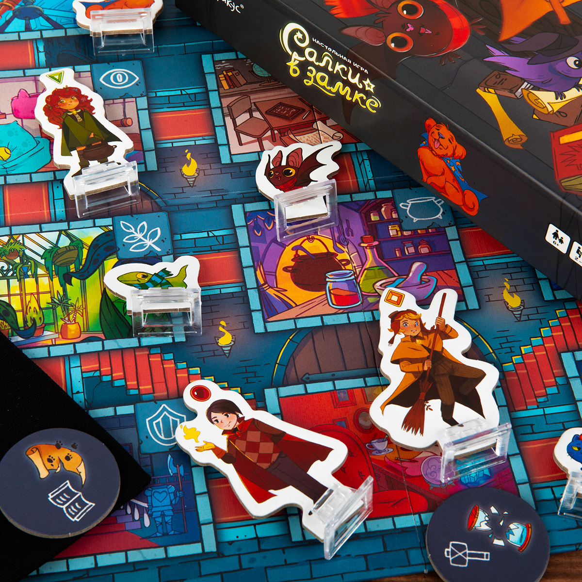 - Чтобы справиться с происшествием, в одной комнате с таким жетоном должны одновременно оказаться 2 волшебника, чьи символы изображены на жетоне.