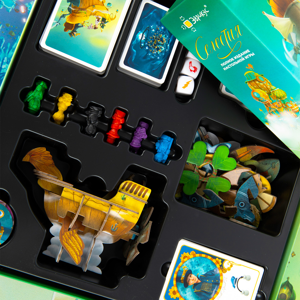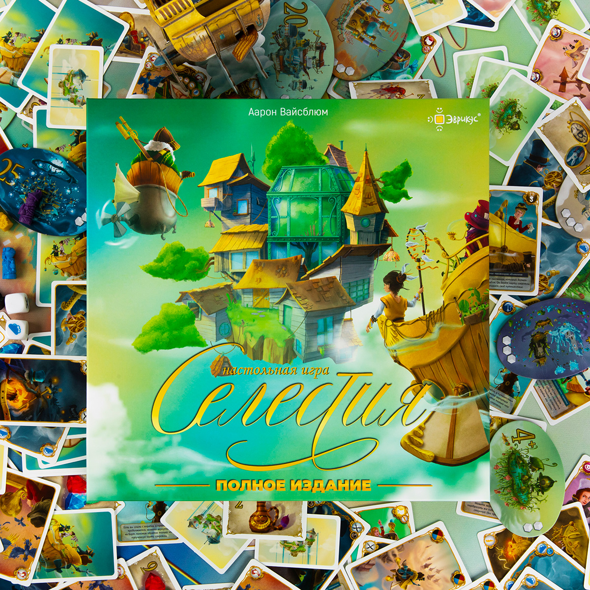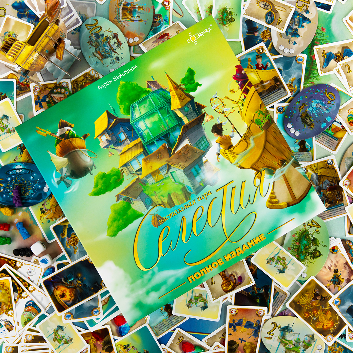«Селестия. Полное издание» включает в себя базовую игру, 2 дополнения «Рука помощи» и «Бунт на корабле», а также бонусные тайлы городов и карты, которые до этого существовали только в формате промо-материалов. Ещё в этом издании вас ждут правила для игры вдвоём за авторством Бруно Катала. А также в коробке вы найдёте набор наклеек для карт, кратко описывающие их эффекты, которые по желанию вы можете использовать, чтобы сделать игровой процесс ещё комфортнее.