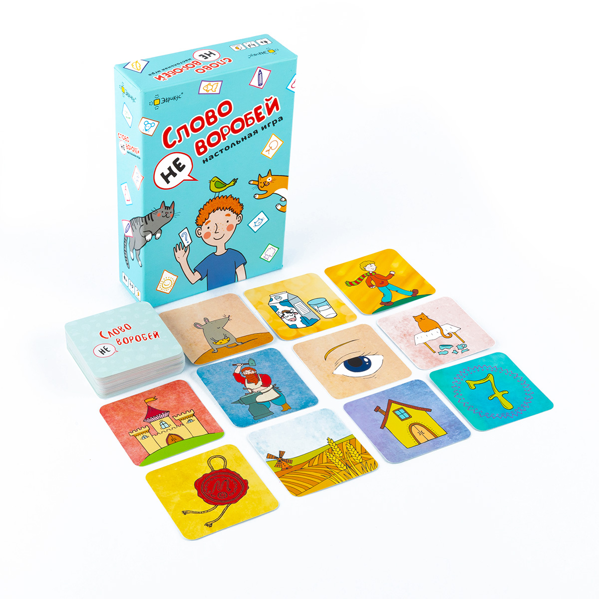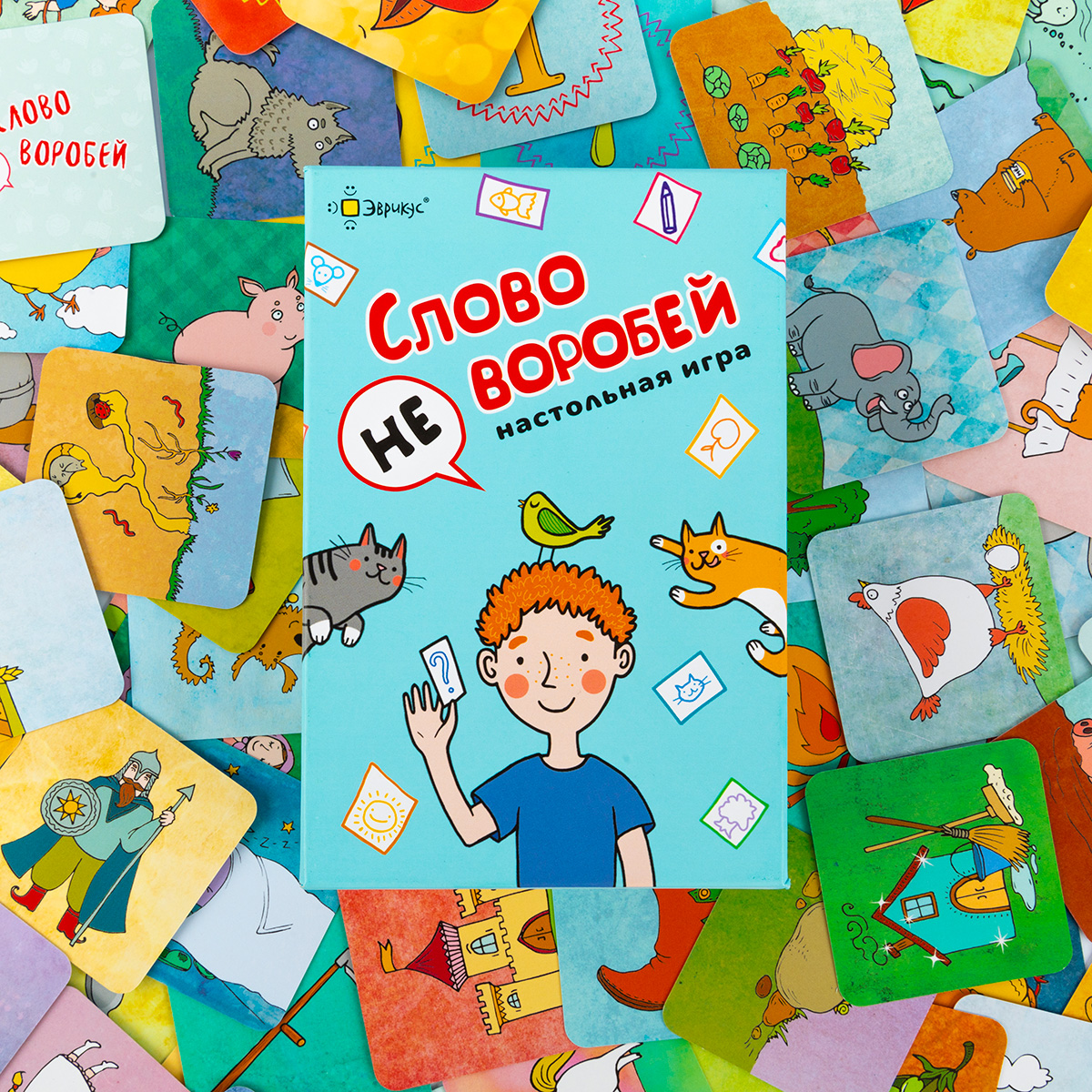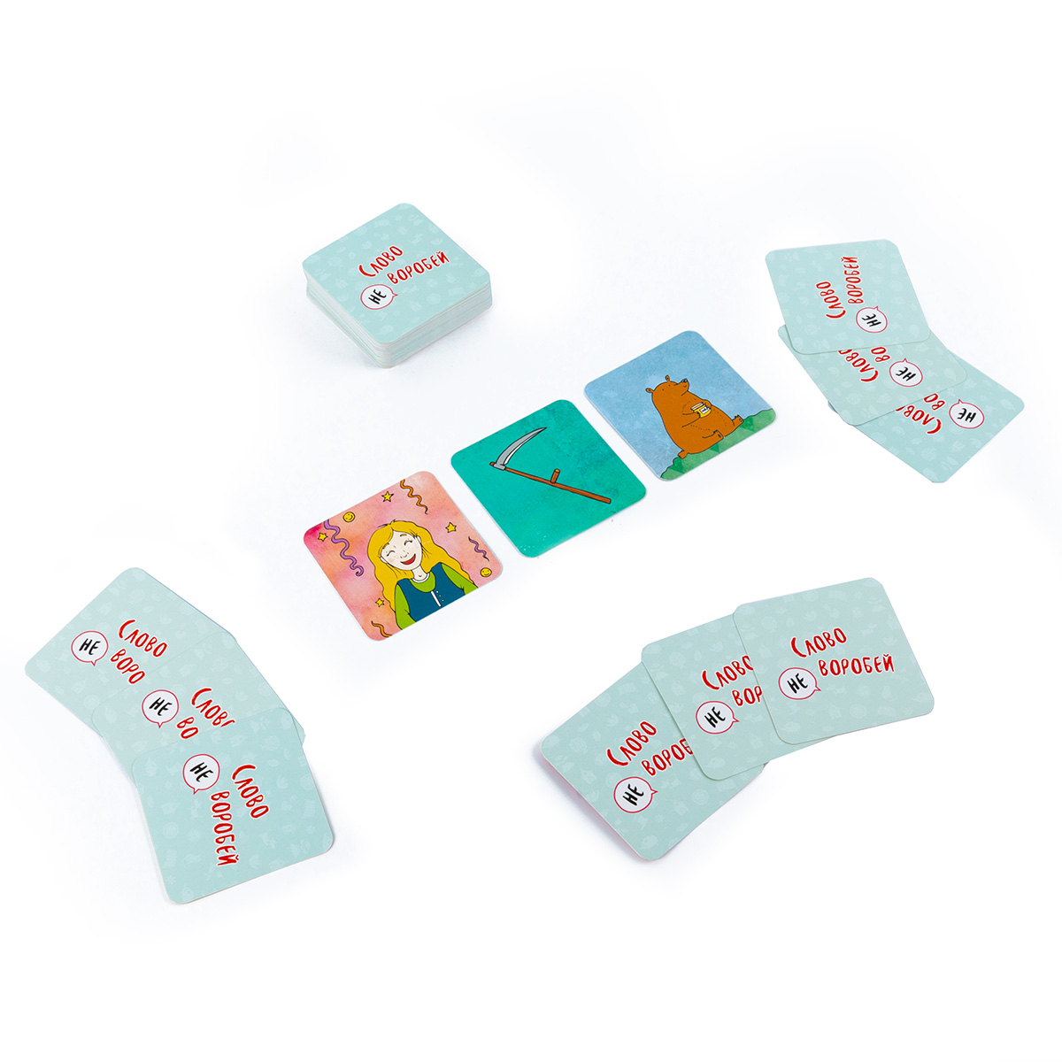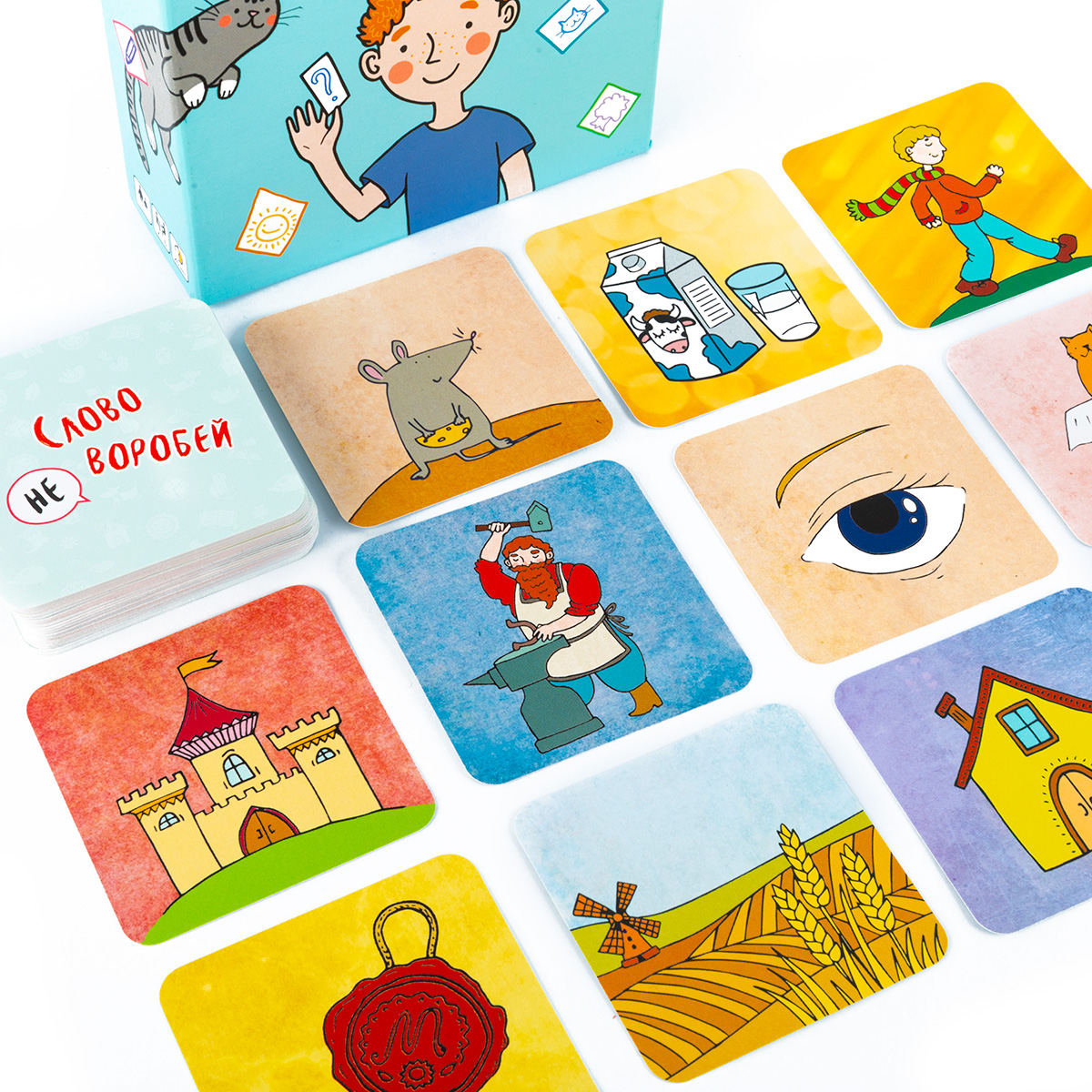 «Слово не воробей» — настольная игра, в которой сочиняются сказки, оживают персонажи и крылатые выражения. Несколько вариантов правил позволят найти интересный вариант и для детей, и для взрослых. Можно всем вместе сочинять бесконечную историю, тренируя память, можно рассказывать историю по случайным карточкам, проверяя свою находчивость, можно вспоминать крылатые выражения, оживляя картинки.