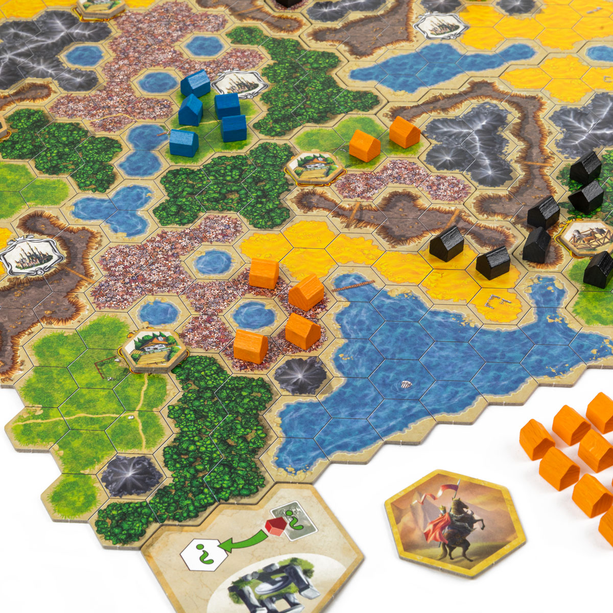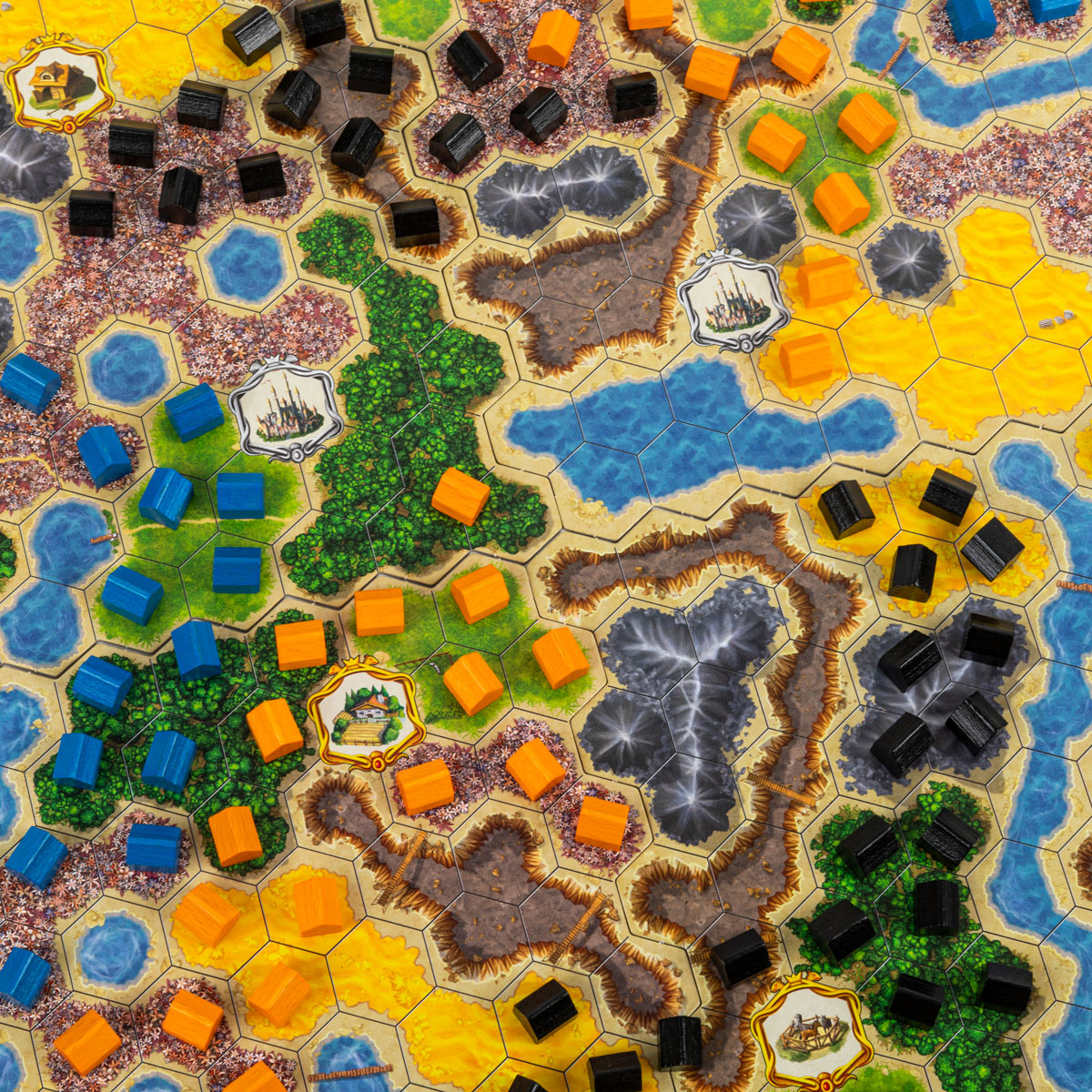 Каждый игрок в начале партии получает 40 фишек поселений выбранного цвета, которые он будет размещать на игровом поле.