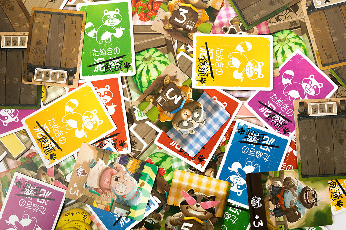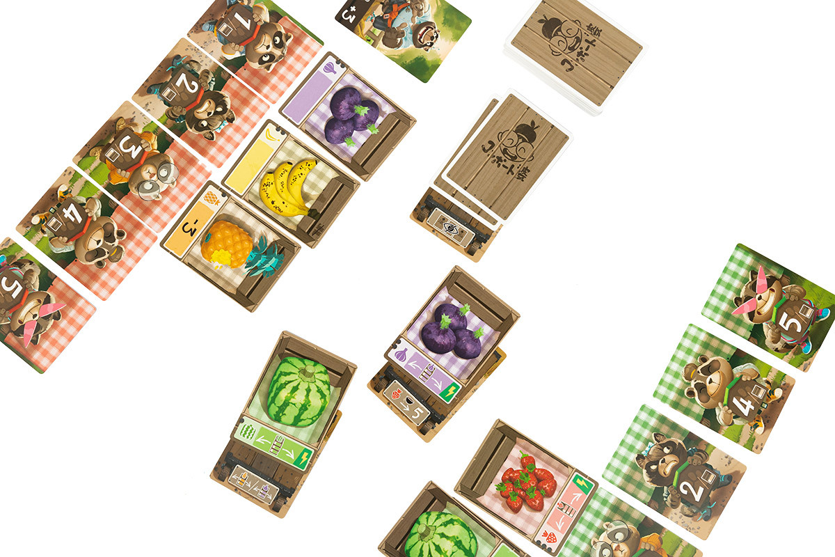 Повторяем действия, пока из колоды карт фруктов не появится карта бабули Гренни. Она прогоняет Тануки из магазинчика, а для игроков это означает конец игры.