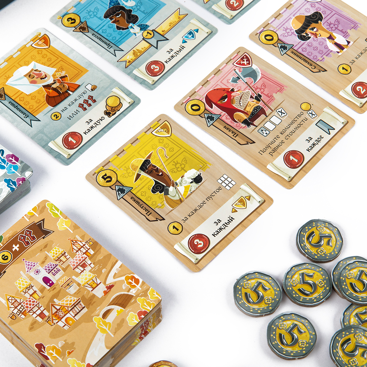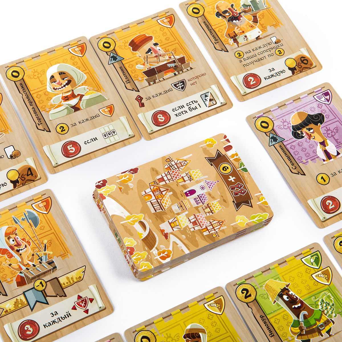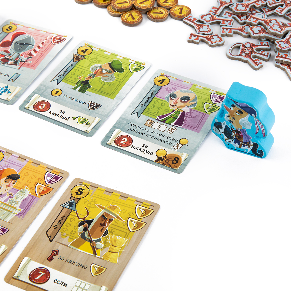 Все персонажи в игре разделены на две области: замок и деревня — деревенские жители обычно дешевле, а вот, чтобы поселить в своём королевстве обитателей замка, придётся раскошелиться. Каждый персонаж обладает особыми эффектами, которые могут быть очень полезными в течение игры. Но помимо этого, каждый ваш подданный принесёт вам победные очки в конце игры согласно условиям на его карте, поэтому важно выбрать стратегию и придерживаться её, если, конечно, вы хотите выиграть.