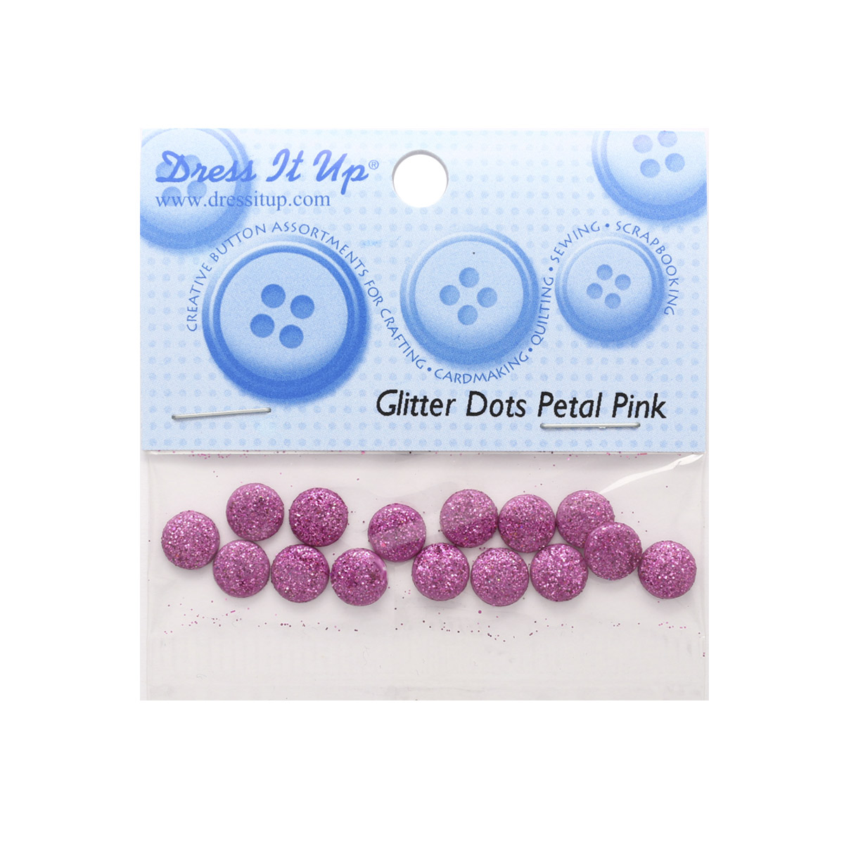 Кабошоны Dress It Up – блестящие элементы для декора. Их можно приклеить непосредственно на бумагу или другую гладкую поверхность либо вставить в оправу подходящего размера. Продукция разработана в США. Используйте кабошоны Dress It Up для любых ваших творческих проектов, например: – Оформления подарочных коробок, букетов с цветами. – Украшения различных предметов интерьера: шкатулок, вазочек, салфетниц. – Создание поделок в технике скрапбукинга: открыток, фоторамок, блокнотов или альбомов. Изготовлены из пластика. Крепление не предусмотрено – для фиксации используйте клей или двусторонний скотч. Цвет: розовый с блестками. В упаковке 15 шт., диаметр 8 мм. Обратите внимание: производитель оставляет за собой право вносить изменения в дизайн, количество и комплектацию изделия без предварительного уведомления.