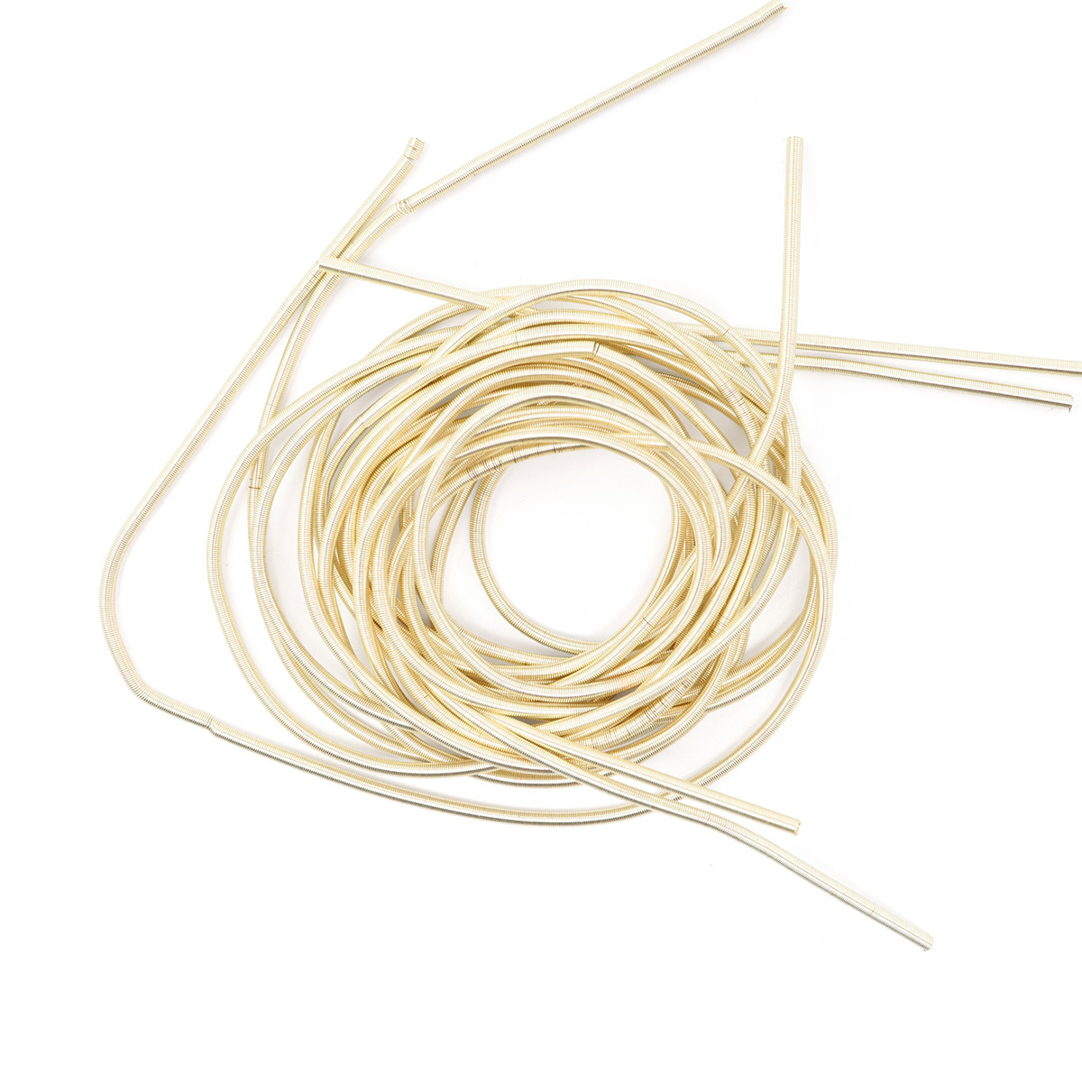 Канитель – проволока, закрученная в тонкую спираль, упругая и прочная. Отличается мягким, приглушенным матовым блеском. Канитель традиционно используют для вышивания и золотого шитья. Подходит также для изготовления авторских украшений – брошей, подвесок с вышивкой. Этим материалом украшают исторические костюмы и костюмы для выступлений, вышитые иконы, торжественные облачения. Канитель выгодно сочетается с бисером, стразами, жемчугом, бусинами, металлизированными нитями. Для вышивки рекомендуется использовать плотную ткань. Цвет: светлое золото. Размер: толщина 1 мм. Количество: 5 г (+- 0,1 г). Внимание: упаковка может содержать несколько отрезов разной длины.