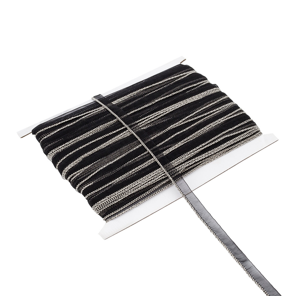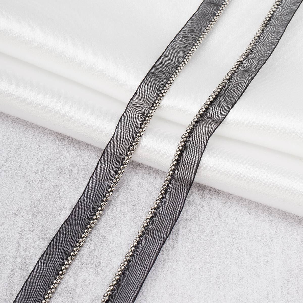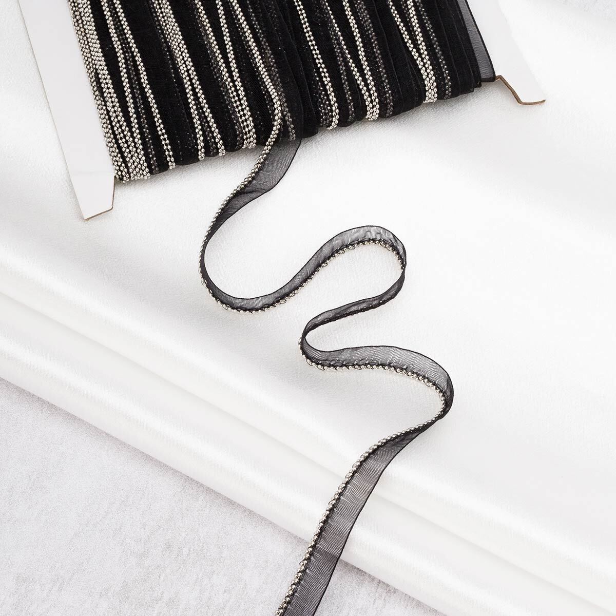 Кант декоративный на сетке с металлическими бусинами 10 мм / 41.14 метров, черный/серебро, 3Al289