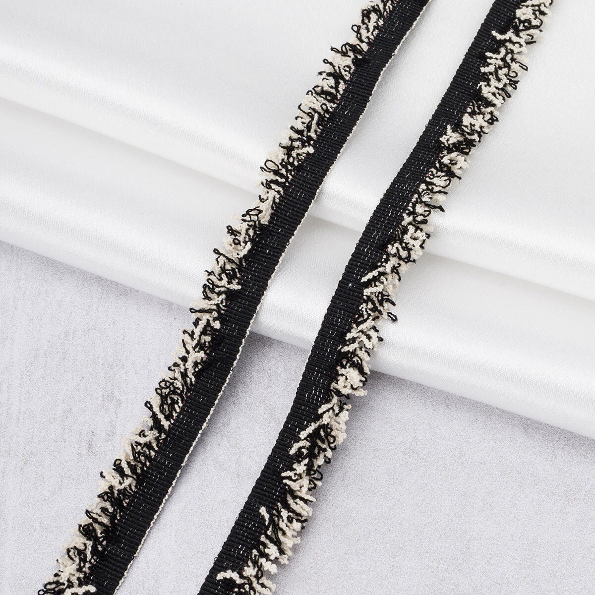 Кант декоративный с бахромой 20 мм / 82.29 метра, черный/белый, 3Al275