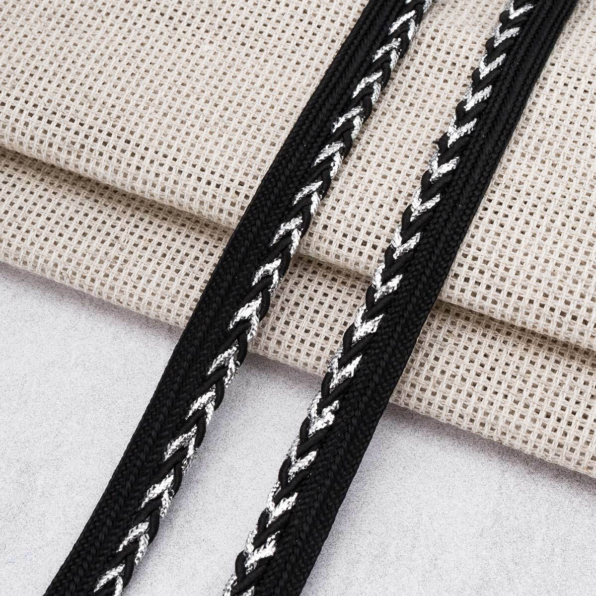 Кант декоративный с люрексом 11 мм / 27.43 метра, 01 черный/серебро, 3Al304