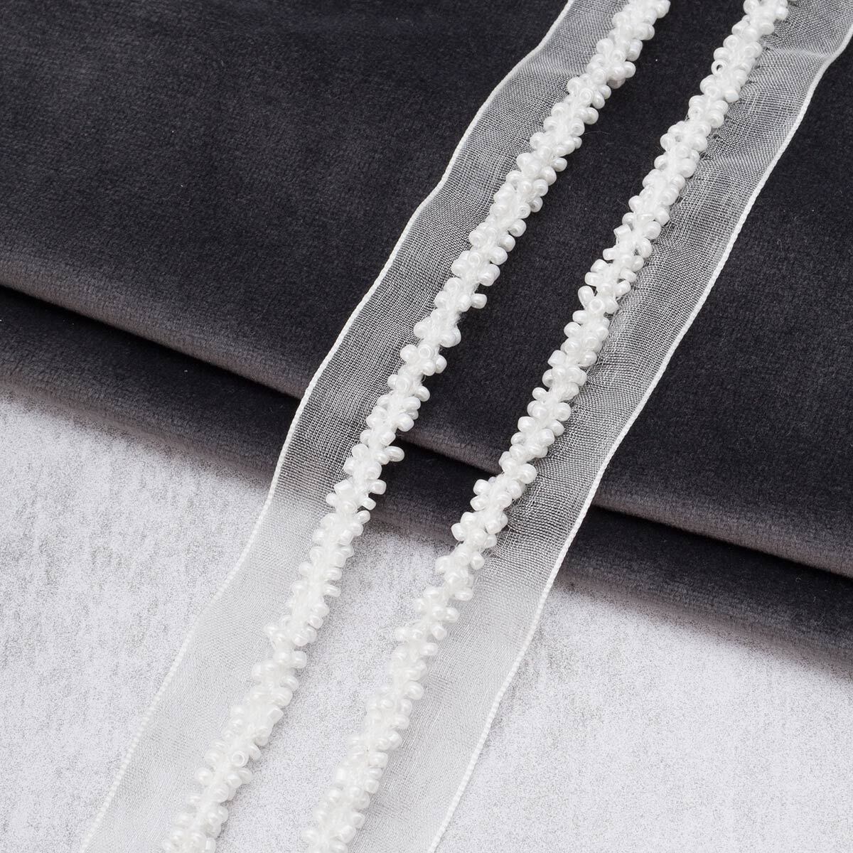 Кант отделочный на сетке с бисером 15 мм / 41.14 метра, белый, 3Al294