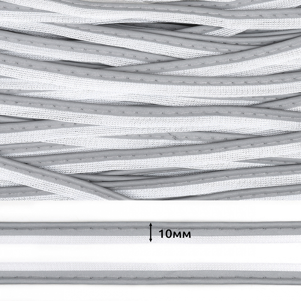 Кант светоотражающий 10 мм / 100 метров, отр.R30 арт.6115 100% пэ цв.серый