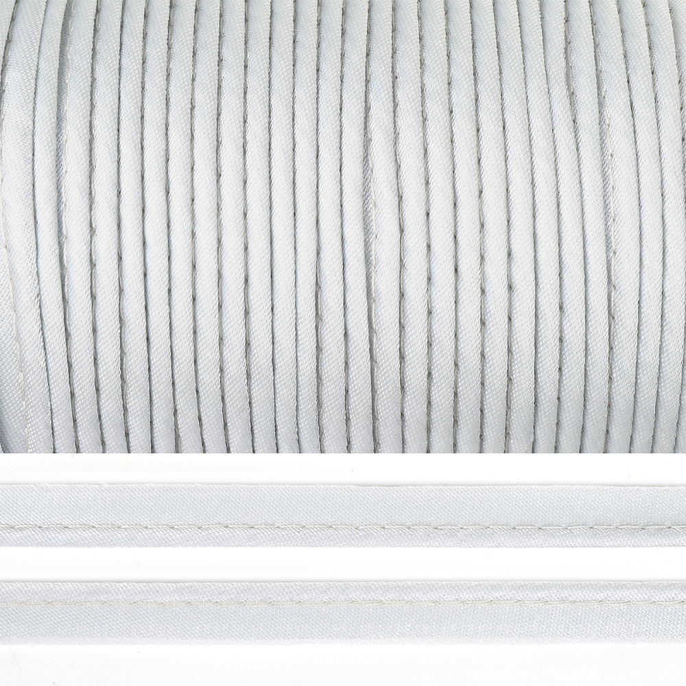 Кант атласный (100% полиэстер) представляет собой раскроенную под углом ленту, сложенную пополам, с вшитым по сгибу шнуром. Используется для отделки, путем втачивания в шов изделия