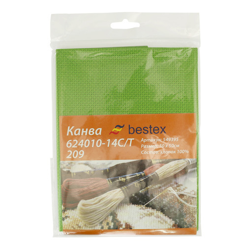 Канва для вышивания 14 ct, 50х50 см, 209 зеленая, 624010-14ct Bestex