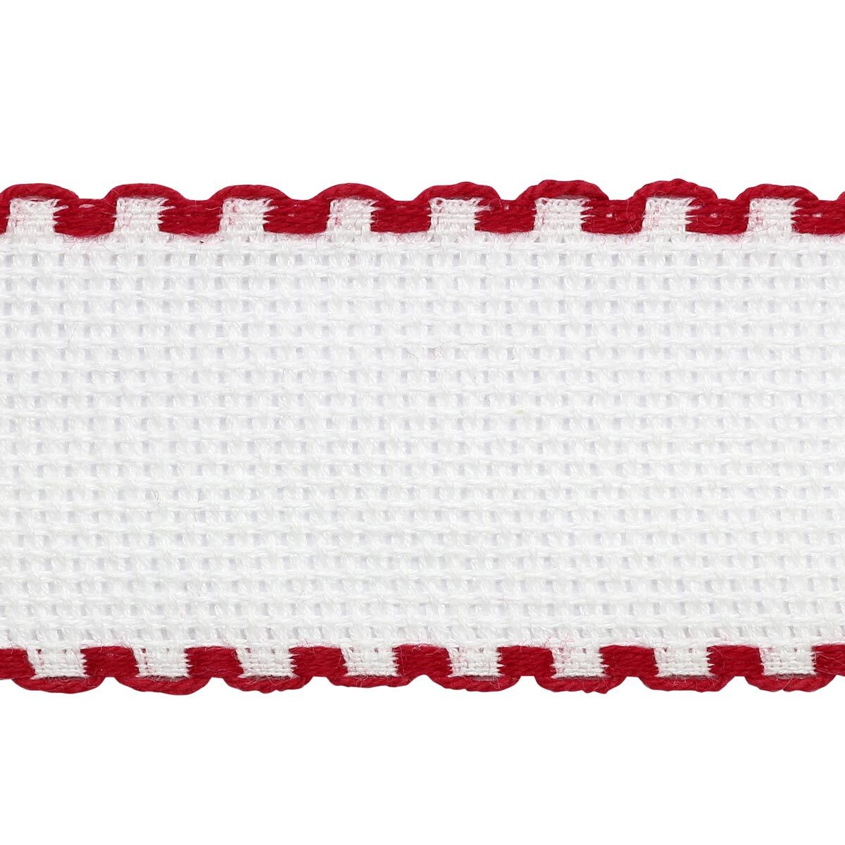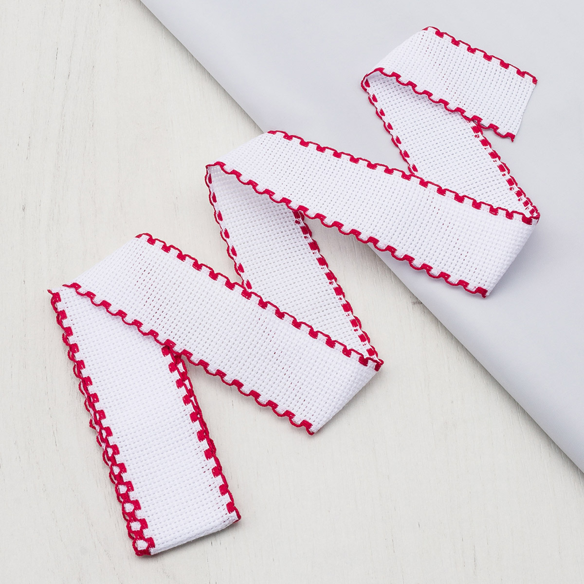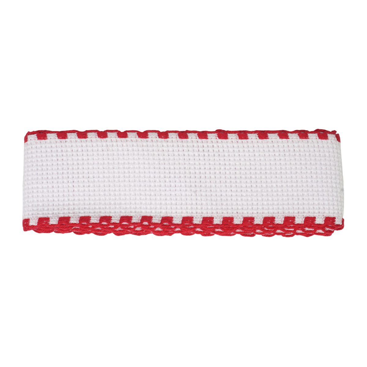 Канва лента 35 мм / 1.5 метра, 100% хлопок Bestex (белый/красный)