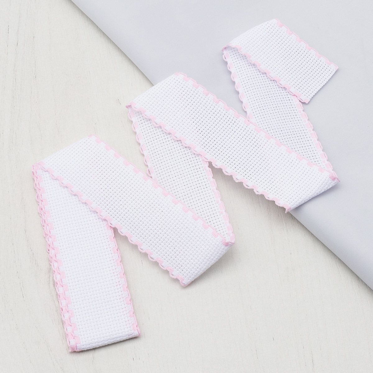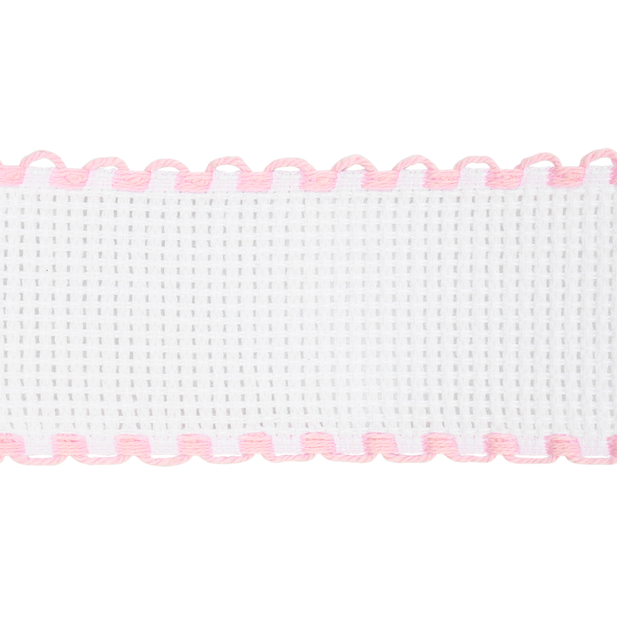 Канва лента 35 мм / 1.5 метра, 100% хлопок Bestex (белый/розовый)
