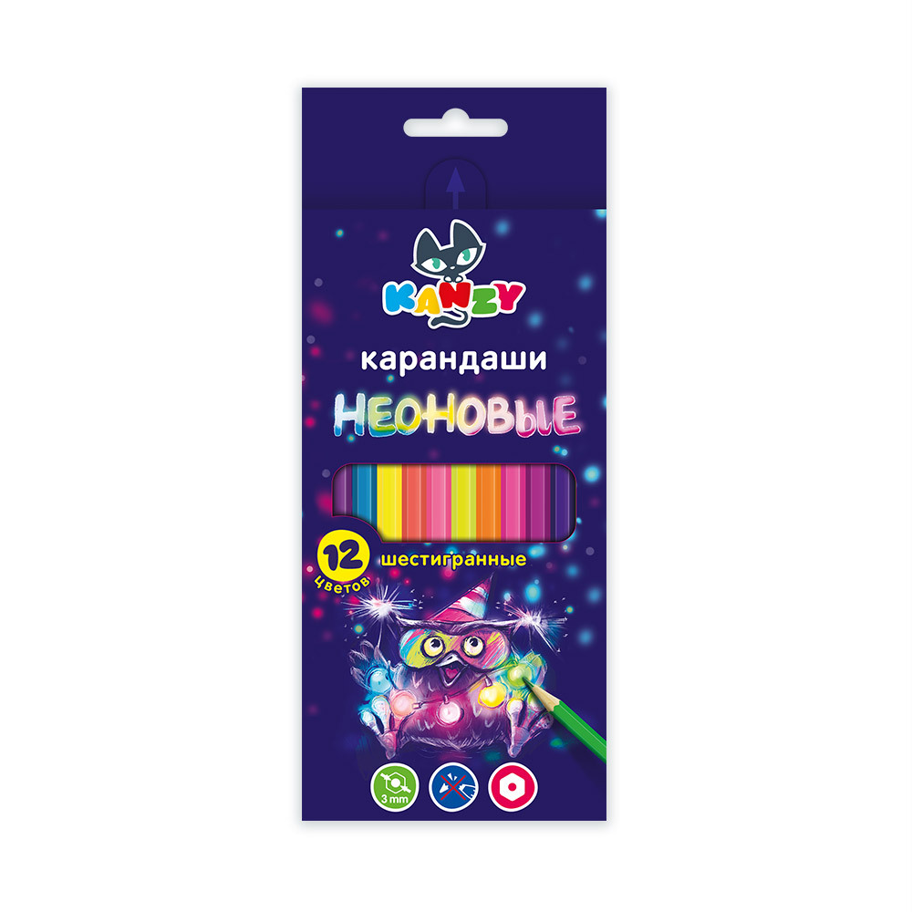 Набор неоновых карандашей Веселый совенок NCP-4012 заточенный 8х12 цв, Kanzy NCP-4012