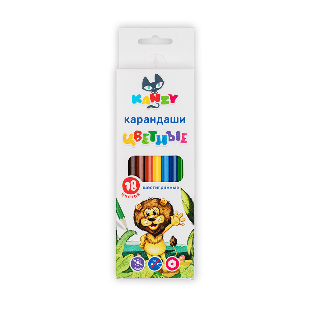 "KANZY" "Весёлый львёнок" CP-4018 Классические шестигранные цветные карандаши.