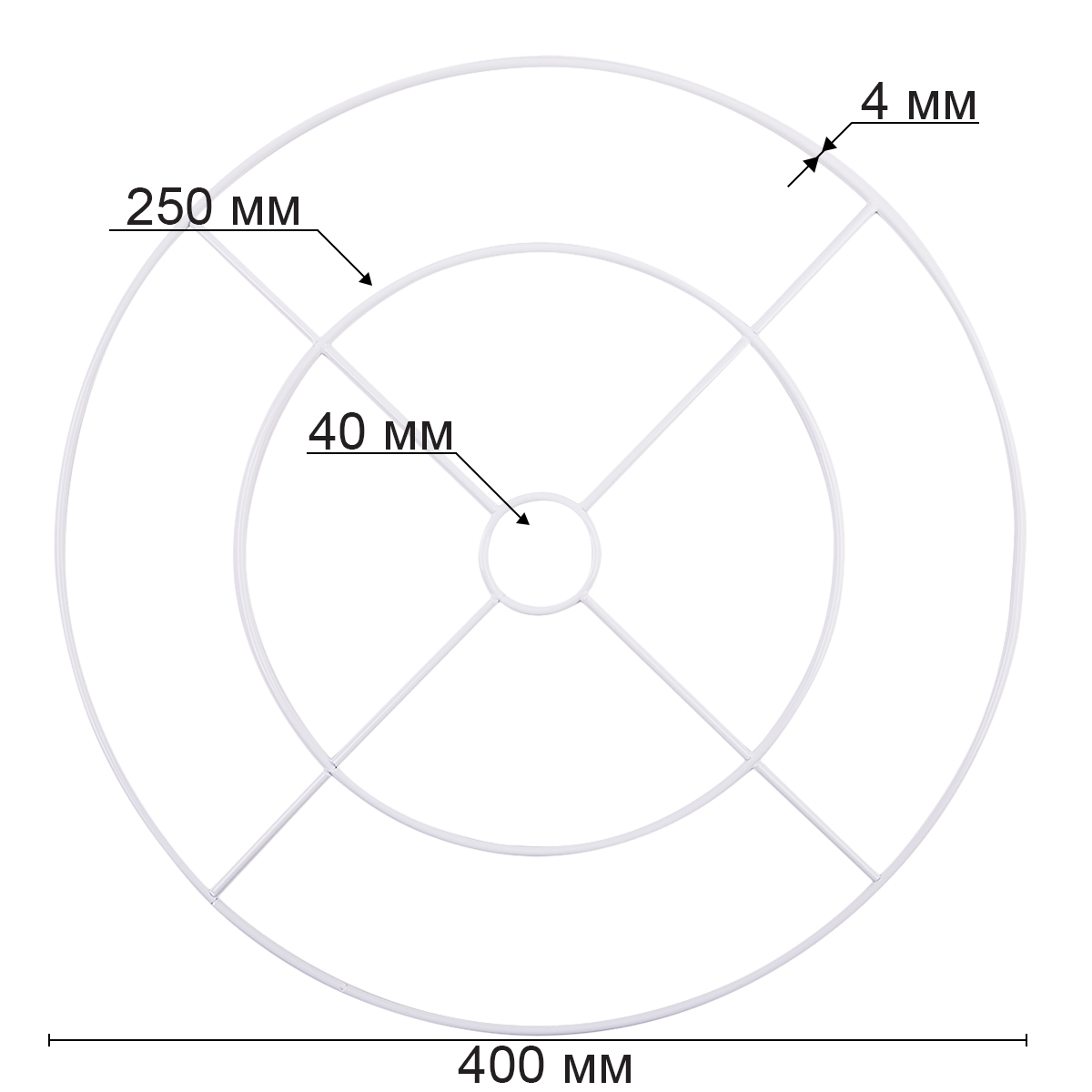 Размер: 40 х 0.4 см, внутренний размер колец 25 и 4 см.