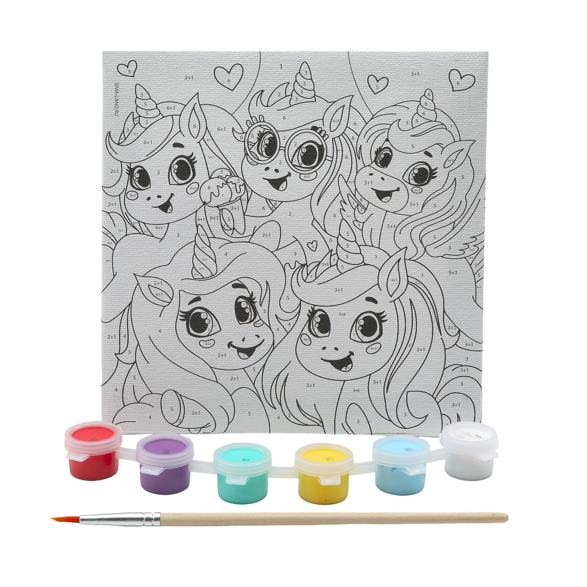 Картина по номерам Школа Талантов 9883144, Единорожки-друзья 15х15см