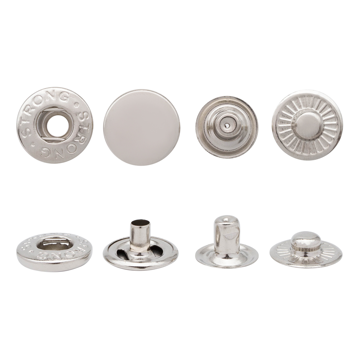 Металлические кнопки широко используются в текстильной промышленности, для пошива спортивного снаряжения, сумок, портфелей. Кнопка очень легка в установке, даже непрофессионал справится с этой работой. Также кнопки широко используются при пошиве и изготовлении обуви, перчаток и прочей кожгалантереи.
