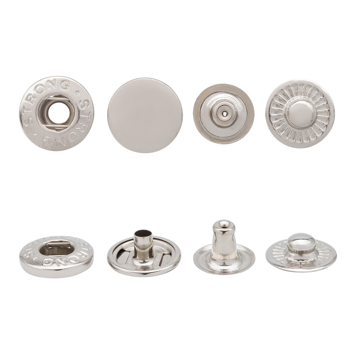Металлические кнопки широко используются в текстильной промышленности, для пошива спортивного снаряжения, сумок, портфелей. Кнопка очень легка в установке, даже непрофессионал справится с этой работой. Также кнопки широко используются при пошиве и изготовлении обуви, перчаток и прочей кожгалантереи.