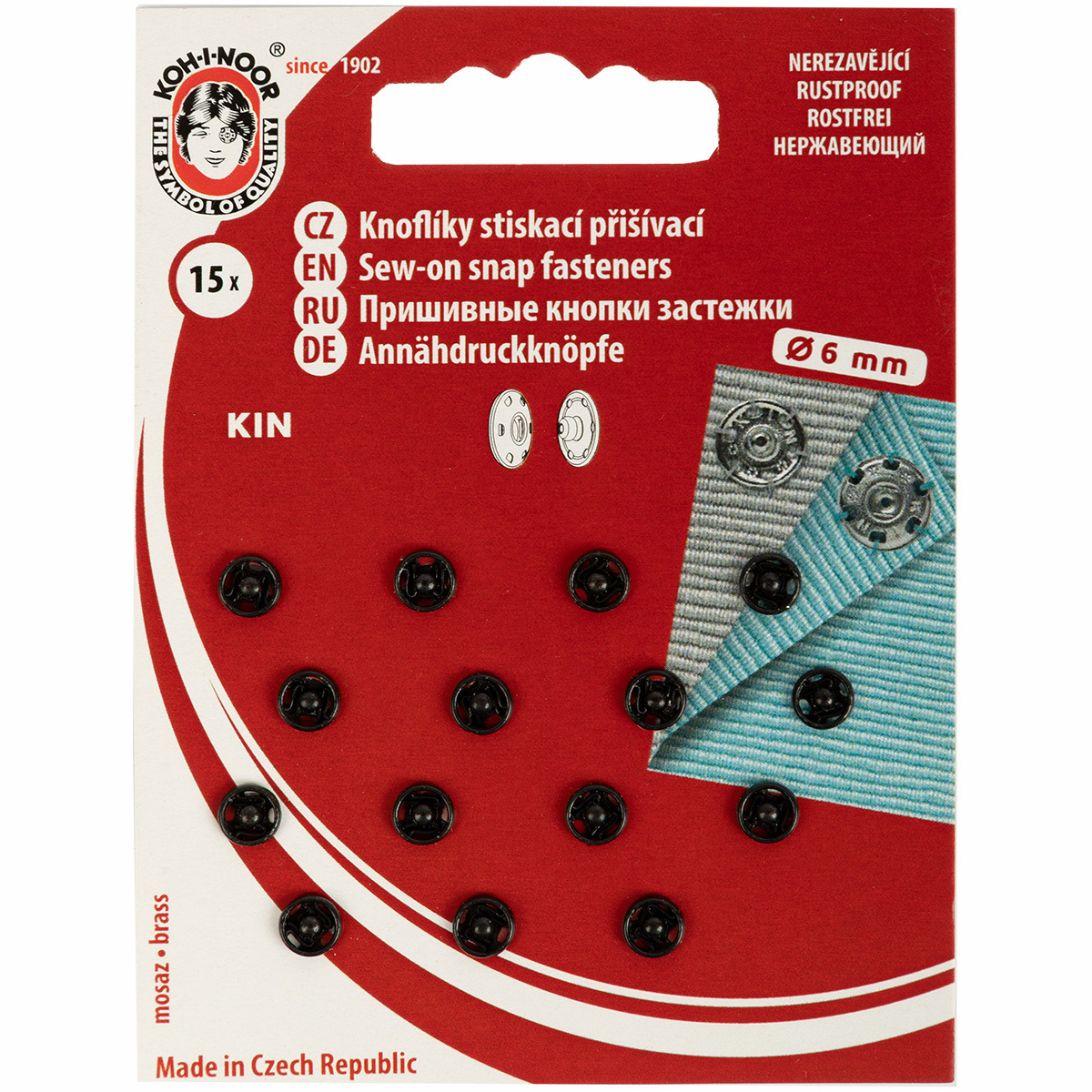 Кнопка пришивная металл ⌀6.0 мм, 15 шт, черный, KOH-I-NOOR 10 (KIN1000 №2/0)