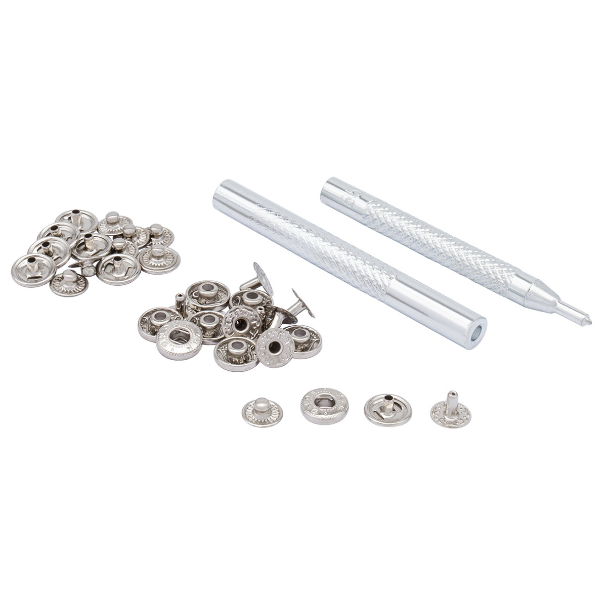 Кнопка Альфа (S-образная) ⌀10 мм, 8 шт, с ручным установщиком, цвет серебряный