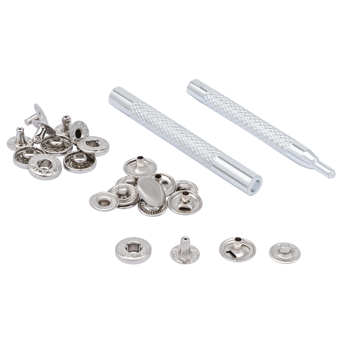 Кнопка Альфа (S-образная) ⌀13 мм, 6 шт, с ручным установщиком, цвет серебряный