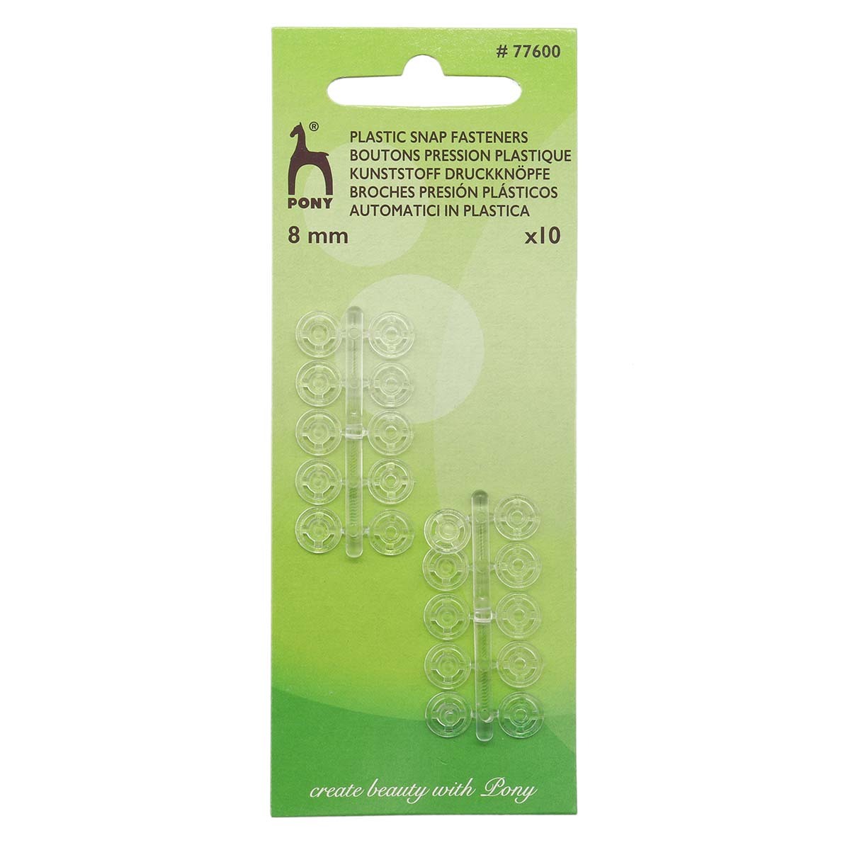 Кнопка пришивная пластик ⌀8 мм, 10 шт, прозрачный, Pony