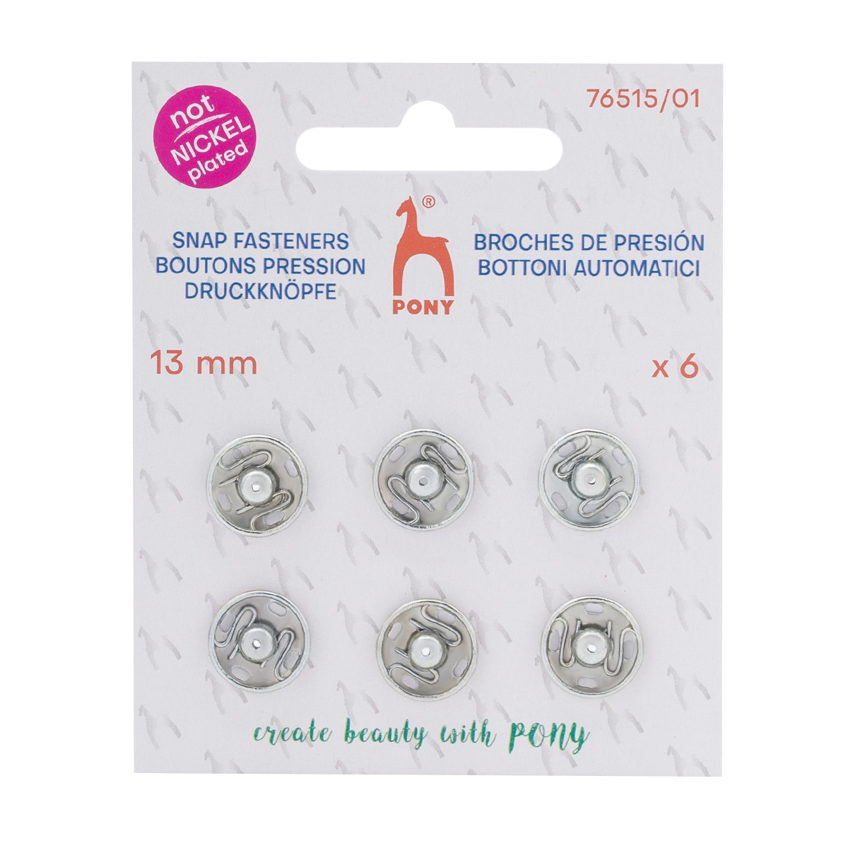 Кнопки пришивные металл 13 мм, серебристый, без никеля, 6 шт, Pony, 76515/01