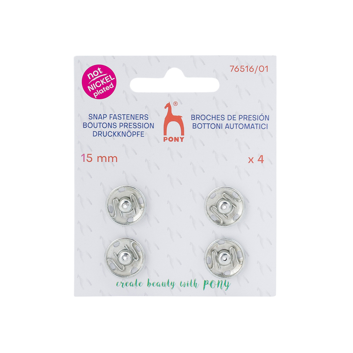Кнопки пришивные металл 15 мм, серебристый, без никеля, 4 шт, Pony, 76516/01