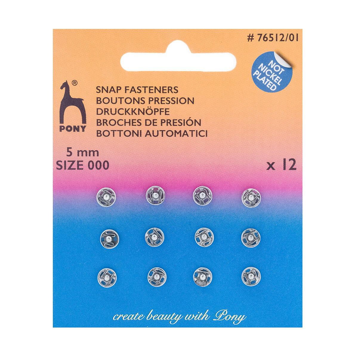 Кнопка пришивная металл 5 мм, серебристый, без никеля, 12 шт, Pony, 76512/01