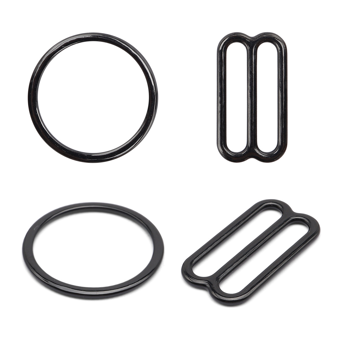 Набор кольца + регуляторы для бюстгальтеров металл 20.0 мм, (10 колец, 10 регул.), черный