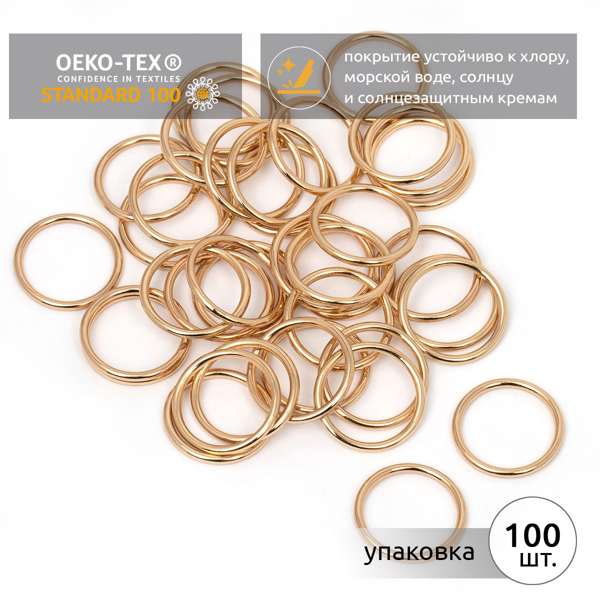 Кольца для купальника металл ⌀18.0 мм, золото, 018E.SW, 100 шт