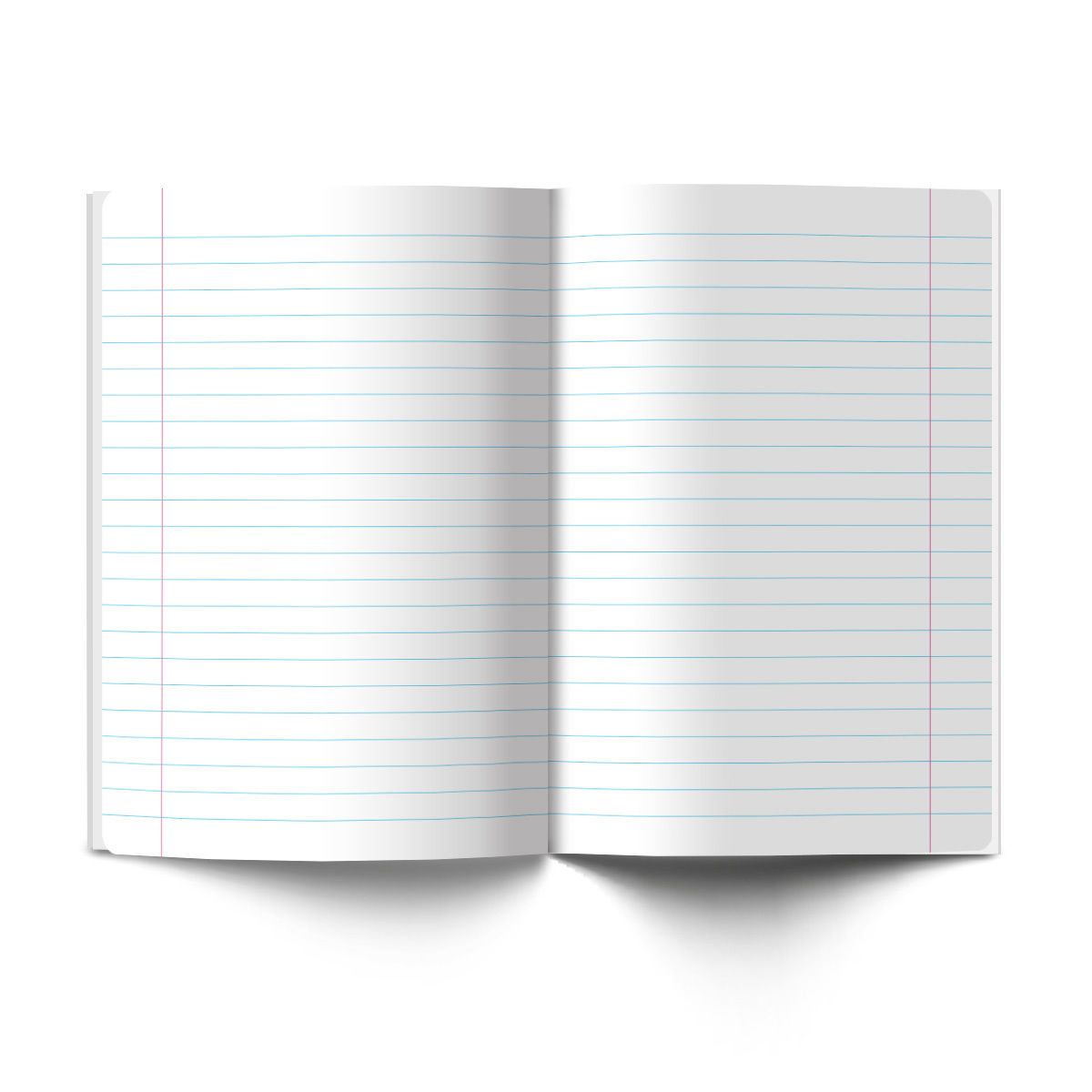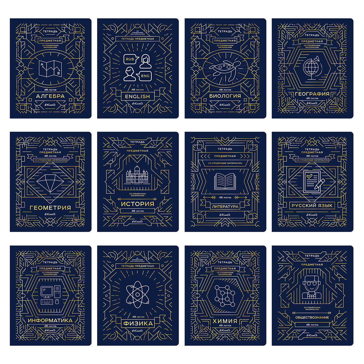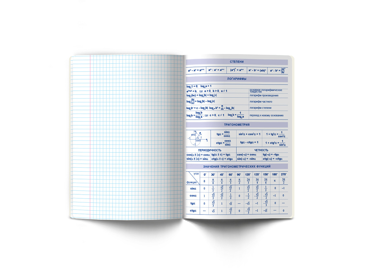 Тетради имеют закругленные уголки, красные поля, титульный лист, запечатанный форзац, справочную информацию по предмету на обороте титульного листа и последнем листе.