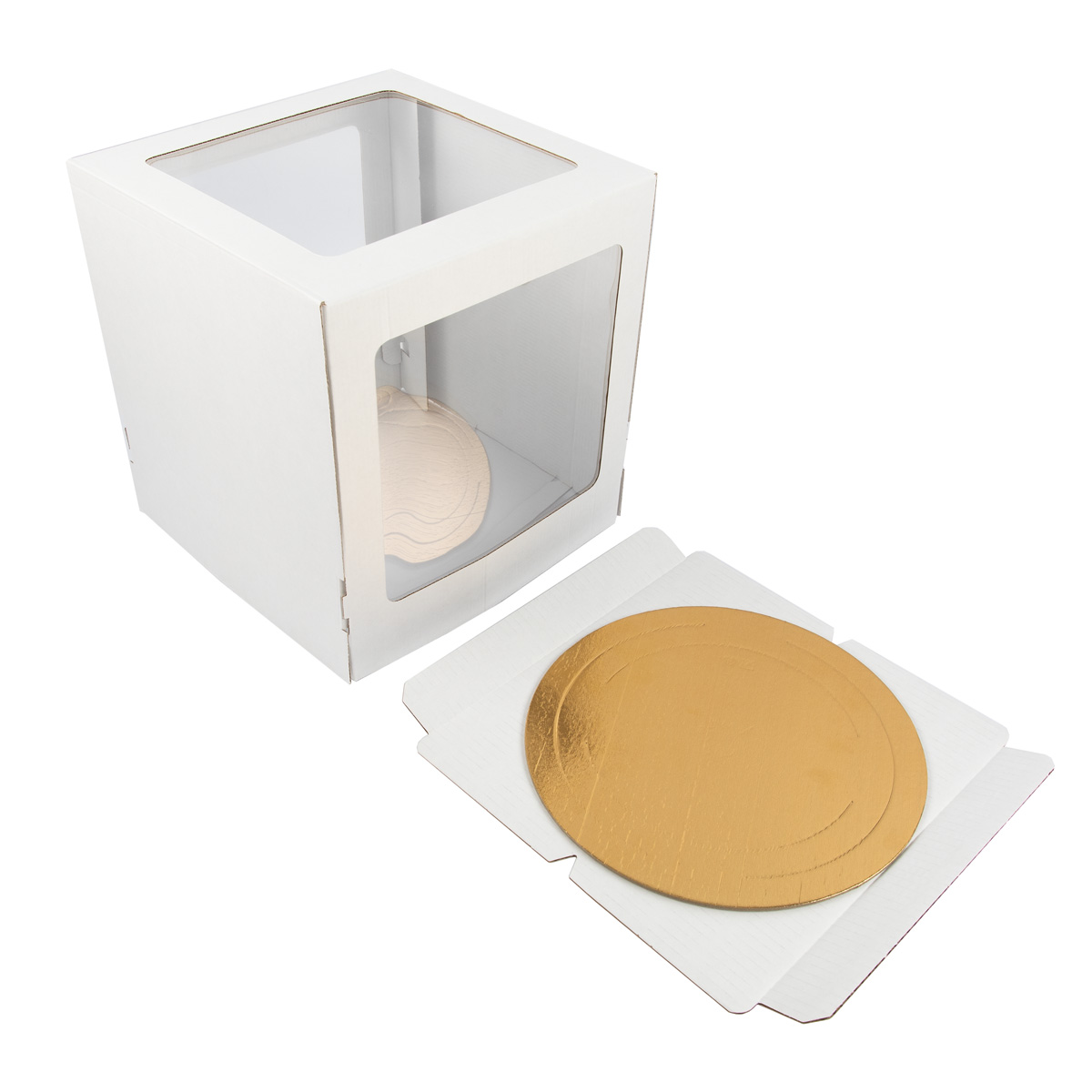 Кондитерская коробка для торта С 3 ОКНАМИ + подложка, 26.5х26.5х29 см, S-Chief, BFC-044