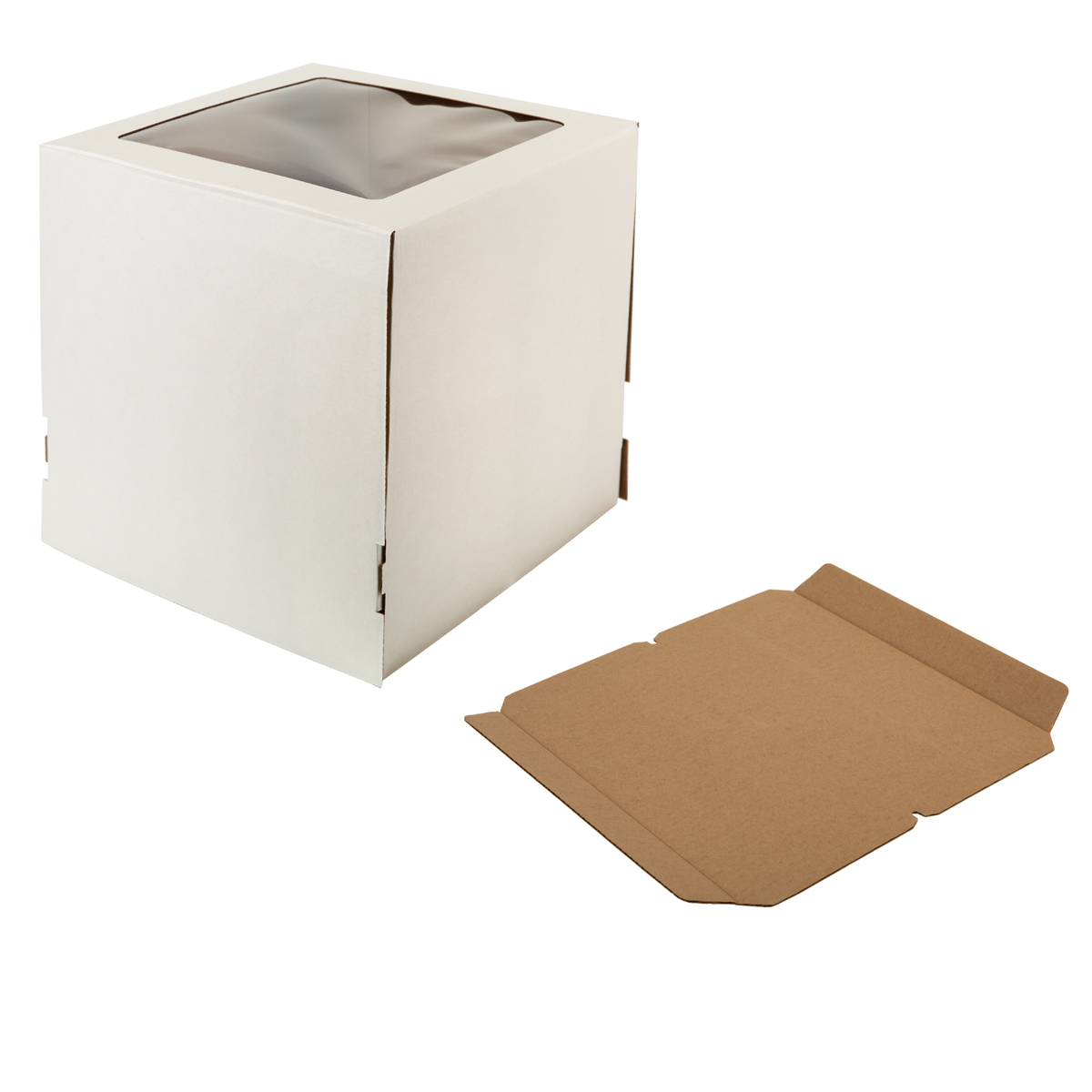 Короб для торта с размерами 26.5 * 26.5 * 29 см предназначен для транспортировки и презентации кондитерского изделия. Размер окна 21 х 21 см. Большое окно позволяет видеть изделие и лучше презентовать его. Представляет собой универсальный вариант для упаковки большого торта. Изготовлен из высококачественного гофрированного картона. Короб белый снаружи. Короб защищает изделие от деформации. Коробка проста и удобна в сборке.