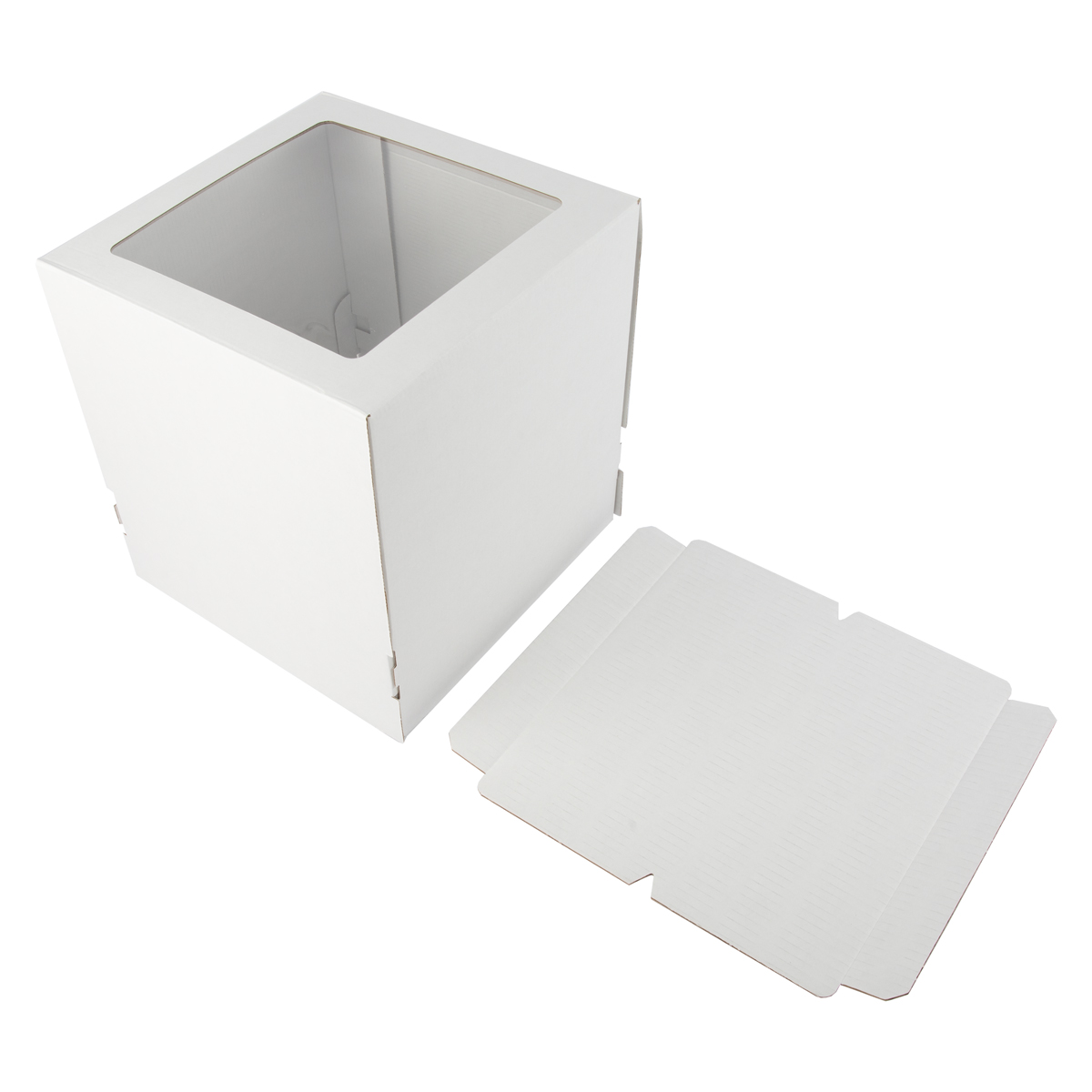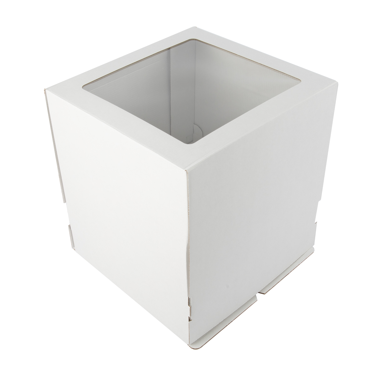 Короб для торта с размерами 26.5 * 26.5 * 29 см с окном предназначен для транспортировки и презентации кондитерского изделия. Размер окна 21 х 21 см. Большое окно позволяет видеть изделие и лучше презентовать его. Представляет собой универсальный вариант для упаковки большого торта. Изготовлен из высококачественного гофрированного картона. Короб белый снаружи и белый внутри. Короб защищает изделие от деформации. Коробка проста и удобна в сборке.