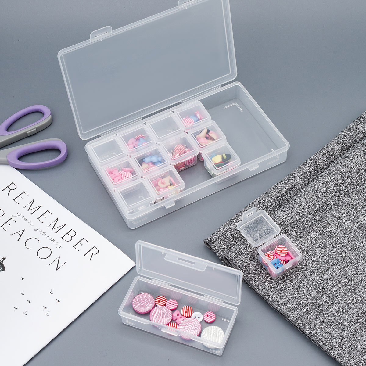 Контейнер для хранения мелочей 19.4х11.3х3 см, 13 штук ассорти в боксе