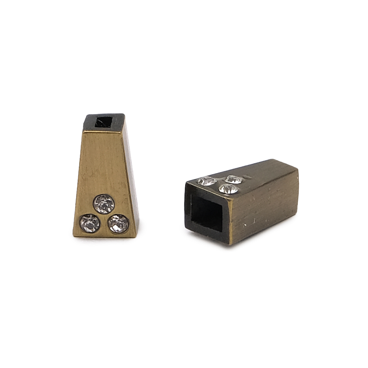 Концевик для шнура металлический со стразами, 11х6.5 мм, 4-х гран., ⌀2.5/4 мм, 4 шт, бронза