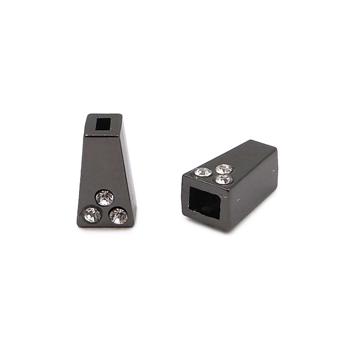 Концевик для шнура металлический со стразами, 11х6.5 мм, 4-х гран., ⌀2.5/4 мм, 4 шт, черный никель