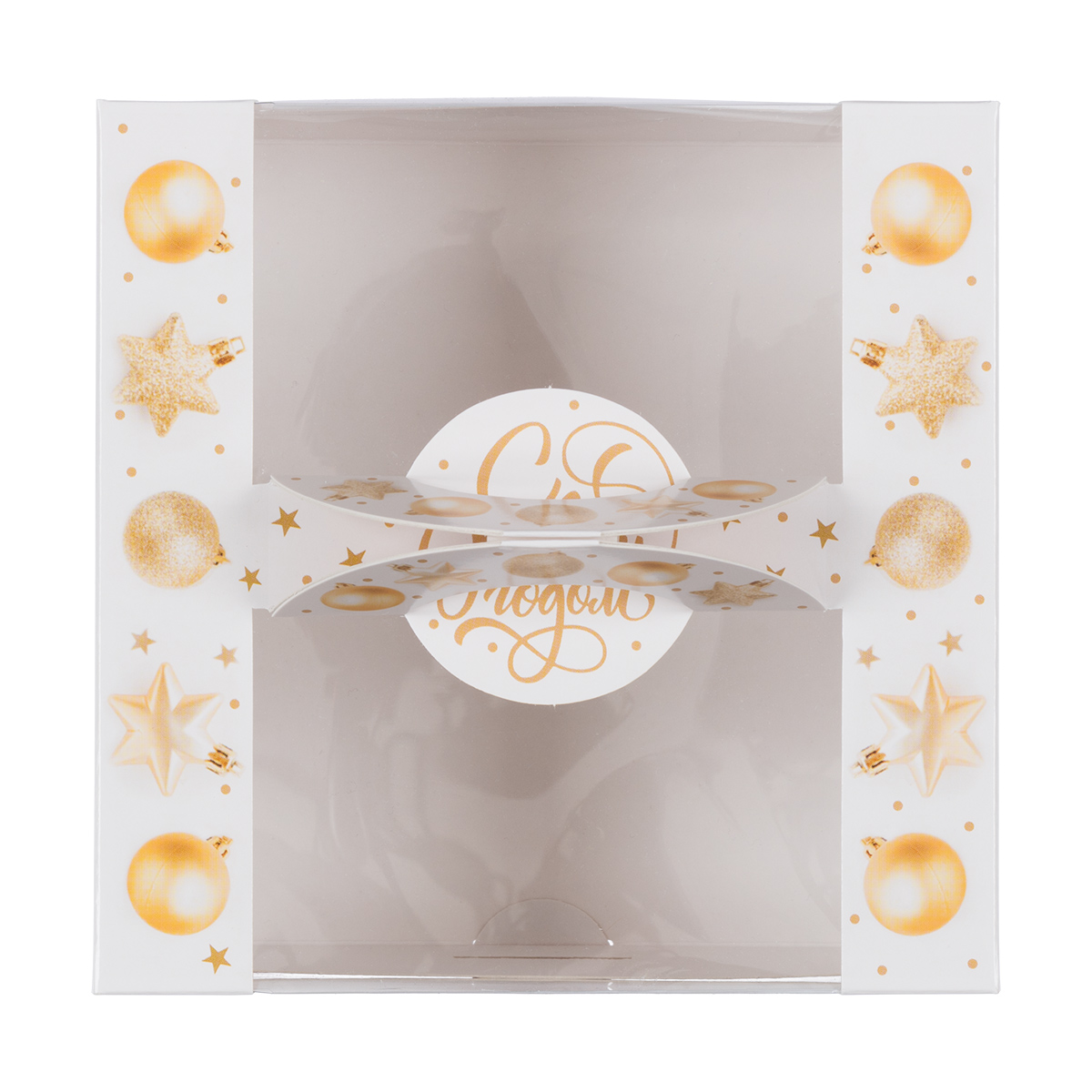 Размеры коробки 14 х 14 х 8 см прекрасно вмещают в себя порционный десерт весом не более 500 грамм. Коробка удобна и проста в сборке. Имеет ручки, за которые можно держать коробку с десертом.