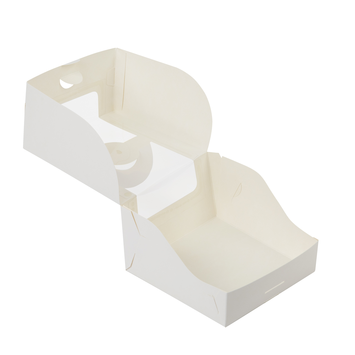 Размеры коробки 14 х 14 х 8 см прекрасно вмещают в себя порционный десерт весом не более 500 грамм. Коробка удобна и проста в сборке. Имеет ручки, за которые можно держать коробку с десертом.