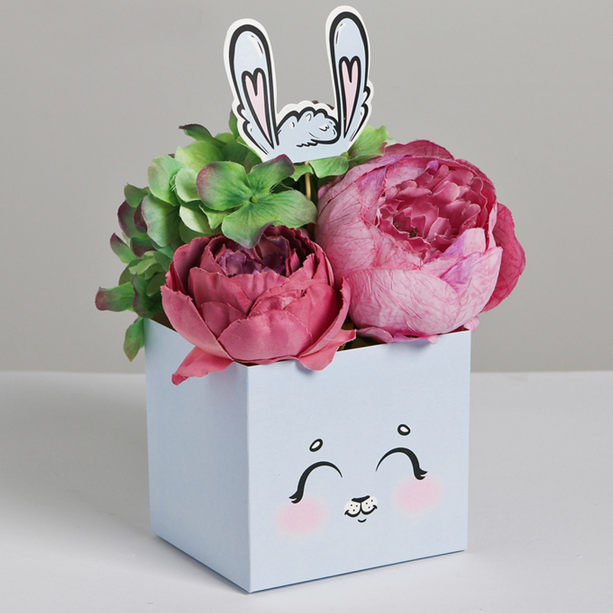 Коробка для цветов с топперами Зайчик, 10х10х12см, 4627890