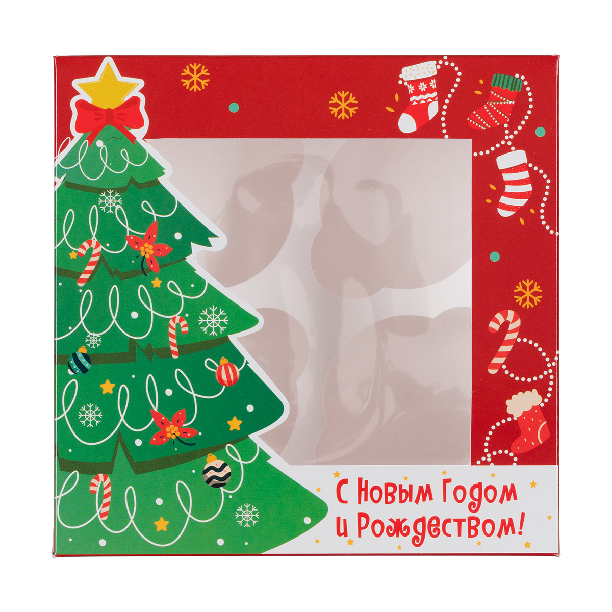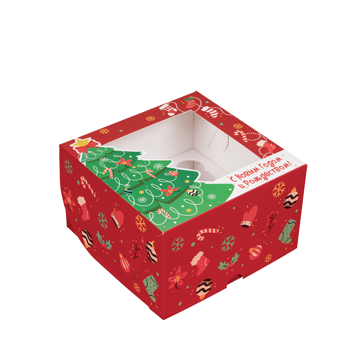 Коробка под 4 капкейка 16х16х10 см, Праздничная ель, S-Chief, CBC-026